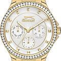 Эти женские часы Slazenger SL.09.2241.4.06 выполнены в современном стиле и станет элегантным дополнением к любому образу. Корпус и браслет изготовлены из прочного металла золотистого цвета с IP-покрытиемIP-покрытиеМетод ионного напыления. Демонстрирует повышенную устойчивость к истиранию, окислению и химическим веществам. Под воздействием высокого давления и температуры около 1500°C молекулы металла надёжно соединяются с частицами корпуса часов., безельБезельВнешний ободок, закрепляющий стекло. В спортивных часах так называется поворотное кольцо с делениями на циферблате, выполняет роль таймера – замеряет отрезки времени на шкале. Неподвижный безель – элемент декора. Однонаправленно вращающийся безель на дайверских часах позволяет фиксировать моменты погружения и выныривания на поверхность. украшен изящными кристаллами, которые придают часам особую привлекательность. На циферблате расположены дополнительные малые циферблаты для отображения даты, дня недели и времени в 24-часовом формате, что делает их функциональными и удобными для ежедневного использования. Минеральное стеклоМинеральное стеклоМинеральное стекло представляет собой искусственно выращенный минерал кварца. Такое стекло отличается особой устойчивостью к повреждениям и царапинам. Уступает по некоторым качествам сапфировому стеклу. надежно защищает циферблат от царапин, а водозащита уровня WR 30 предохраняет механизм от случайных брызг воды. Заводная головка оснащена защитой, а стрелки имеют подсветку для легкого считывания времени в темноте. Диаметр корпуса составляет 34 мм, ширина браслета — 16 мм, толщина корпуса — 9 мм. Часы фиксируются на руке с помощью удобной раскладной застёжкиРаскладная застёжкаТакой тип застёжки используется только на браслетах из металла. Она никогда не раскрывается полностью, происходит разделение на 2 и более частей. Раскладывающая застёжка снизит вероятность потери часов к минимуму.. Вес изделия подобран для комфортной ежедневной носки. Для удобства использования в темное время суток предусмотрено люминесцентное покрытиеЛюминесцентное покрытиеПозволяет считывать показания времени в темноте. Производители наносят на стрелки, часовые индексы, безель или поверхность циферблата светонакопительный состав, дающий холодное свечение. стрелок.