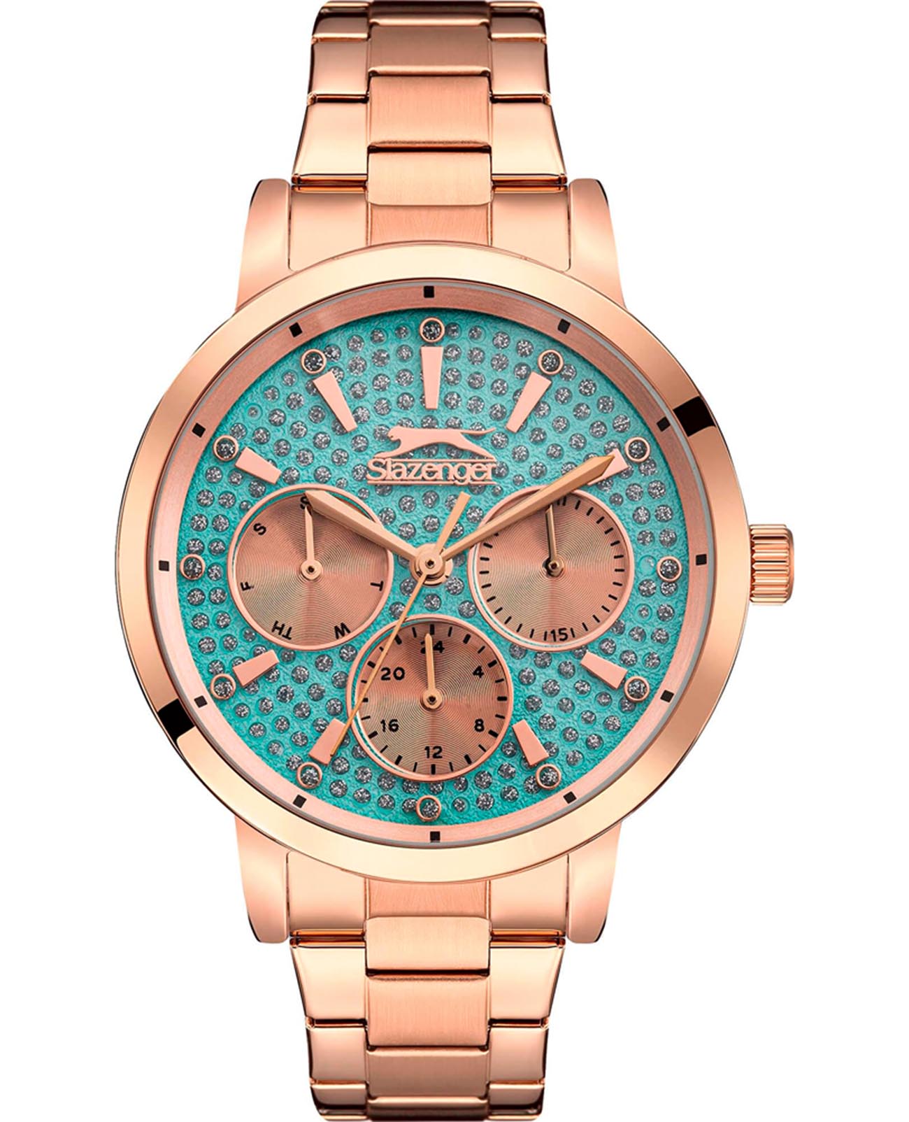 Женские кварцевые часы Slazenger SL.09.2299.3.02 — это элегантный и функциональный аксессуар, сочетающий стиль и надёжность. Корпус и браслет выполнены из суперметалла с IP-покрытиемIP-покрытиеМетод ионного напыления. Демонстрирует повышенную устойчивость к истиранию, окислению и химическим веществам. Под воздействием высокого давления и температуры около 1500°C молекулы металла надёжно соединяются с частицами корпуса часов., защищён минеральным стекломМинеральное стеклоМинеральное стекло представляет собой искусственно выращенный минерал кварца. Такое стекло отличается особой устойчивостью к повреждениям и царапинам. Уступает по некоторым качествам сапфировому стеклу.. Циферблат мятного цвета украшен фианитами, придающими модели изысканное сияние. Часы оснащены вынесенными малыми циферблатами для индикации дня недели, даты и времени в 24-часовом формате. Браслет фиксируется на раскладной застёжкеРаскладная застёжкаТакой тип застёжки используется только на браслетах из металла. Она никогда не раскрывается полностью, происходит разделение на 2 и более частей. Раскладывающая застёжка снизит вероятность потери часов к минимуму., обеспечивая удобство и надёжность ношения. Водонепроницаемость 30 м позволяет использовать часы в повседневных условиях, защищая от случайных брызг и капель дождя. Модель подчёркивает женственность и индивидуальность, идеально подходя как для повседневного, так и для торжественного образа.