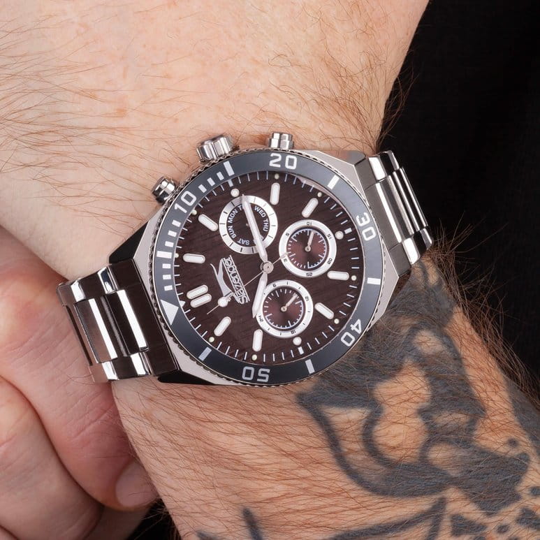 Мужские кварцевые часы Slazenger SL.09.2370.2.06 – идеальное сочетание классического дизайна и современных технологий, созданное для уверенных в себе мужчин. Корпус выполнен из суперметалла серебристого цвета, диаметром 44.5 мм и толщиной 13 мм, подчёркивает надежность модели и делает их идеальным аксессуаром для любой ситуации – будь то деловая встреча или повседневные выходы. Циферблат надёжно защищён минеральным стекломМинеральное стеклоМинеральное стекло представляет собой искусственно выращенный минерал кварца. Такое стекло отличается особой устойчивостью к повреждениям и царапинам. Уступает по некоторым качествам сапфировому стеклу., которое устойчиво к механическим повреждениям и сохраняет кристальную прозрачность. БезельБезельВнешний ободок, закрепляющий стекло. В спортивных часах так называется поворотное кольцо с делениями на циферблате, выполняет роль таймера – замеряет отрезки времени на шкале. Неподвижный безель – элемент декора. Однонаправленно вращающийся безель на дайверских часах позволяет фиксировать моменты погружения и выныривания на поверхность. с IP-покрытиемIP-покрытиеМетод ионного напыления. Демонстрирует повышенную устойчивость к истиранию, окислению и химическим веществам. Под воздействием высокого давления и температуры около 1500°C молекулы металла надёжно соединяются с частицами корпуса часов. черного цвета. Стальной браслет удобно облегает запястье и фиксируется с помощью раскладной застёжкиРаскладная застёжкаТакой тип застёжки используется только на браслетах из металла. Она никогда не раскрывается полностью, происходит разделение на 2 и более частей. Раскладывающая застёжка снизит вероятность потери часов к минимуму., обеспечивая надёжность и комфорт в повседневном ношении. Стрелки и метки покрыты люминесцентным покрытиемЛюминесцентное покрытиеПозволяет считывать показания времени в темноте. Производители наносят на стрелки, часовые индексы, безель или поверхность циферблата светонакопительный состав, дающий холодное свечение., обеспечивающим отличную читаемость в темноте. Эти часы станут не просто аксессуаром, а надежным спутником в любой ситуации, подчеркивая ваш безупречный вкус и деловой стиль. Вынесенный циферблат с 24-х часовым указателем времени. Водозащита 50 метров позволит защитить корпус от случайных брызг или капель дождя.