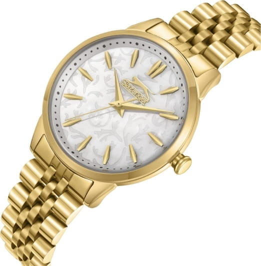 Женские кварцевые часы Slazenger SL.09.2373.3.05 – это сочетание элегантности, современного стиля и надёжности. Изящный корпус из суперметалла с IP-покрытиемIP-покрытиеМетод ионного напыления. Демонстрирует повышенную устойчивость к истиранию, окислению и химическим веществам. Под воздействием высокого давления и температуры около 1500°C молекулы металла надёжно соединяются с частицами корпуса часов. золотистого цвета, диаметром 34 мм и толщиной 9 мм, подчёркивает утончённость модели и делает их идеальным аксессуаром для любой ситуации – будь то деловая встреча, романтический вечер или повседневные выходы. Циферблат надёжно защищён минеральным стекломМинеральное стеклоМинеральное стекло представляет собой искусственно выращенный минерал кварца. Такое стекло отличается особой устойчивостью к повреждениям и царапинам. Уступает по некоторым качествам сапфировому стеклу., которое устойчиво к механическим повреждениям и сохраняет кристальную прозрачность. Браслет из суперметалла с IP-покрытиемIP-покрытиеМетод ионного напыления. Демонстрирует повышенную устойчивость к истиранию, окислению и химическим веществам. Под воздействием высокого давления и температуры около 1500°C молекулы металла надёжно соединяются с частицами корпуса часов. удобно облегает запястье и фиксируется с помощью раскладной застёжкиРаскладная застёжкаТакой тип застёжки используется только на браслетах из металла. Она никогда не раскрывается полностью, происходит разделение на 2 и более частей. Раскладывающая застёжка снизит вероятность потери часов к минимуму., обеспечивая надёжность и комфорт в повседневном ношении. Утончённый стиль, внимание к деталям и практичность делают эту модель идеальным выбором для современных женщин, ценящих эстетику и функциональность. Водозащита до 30 метров позволит защитить корпус от случайных брызг или капель дождя.