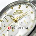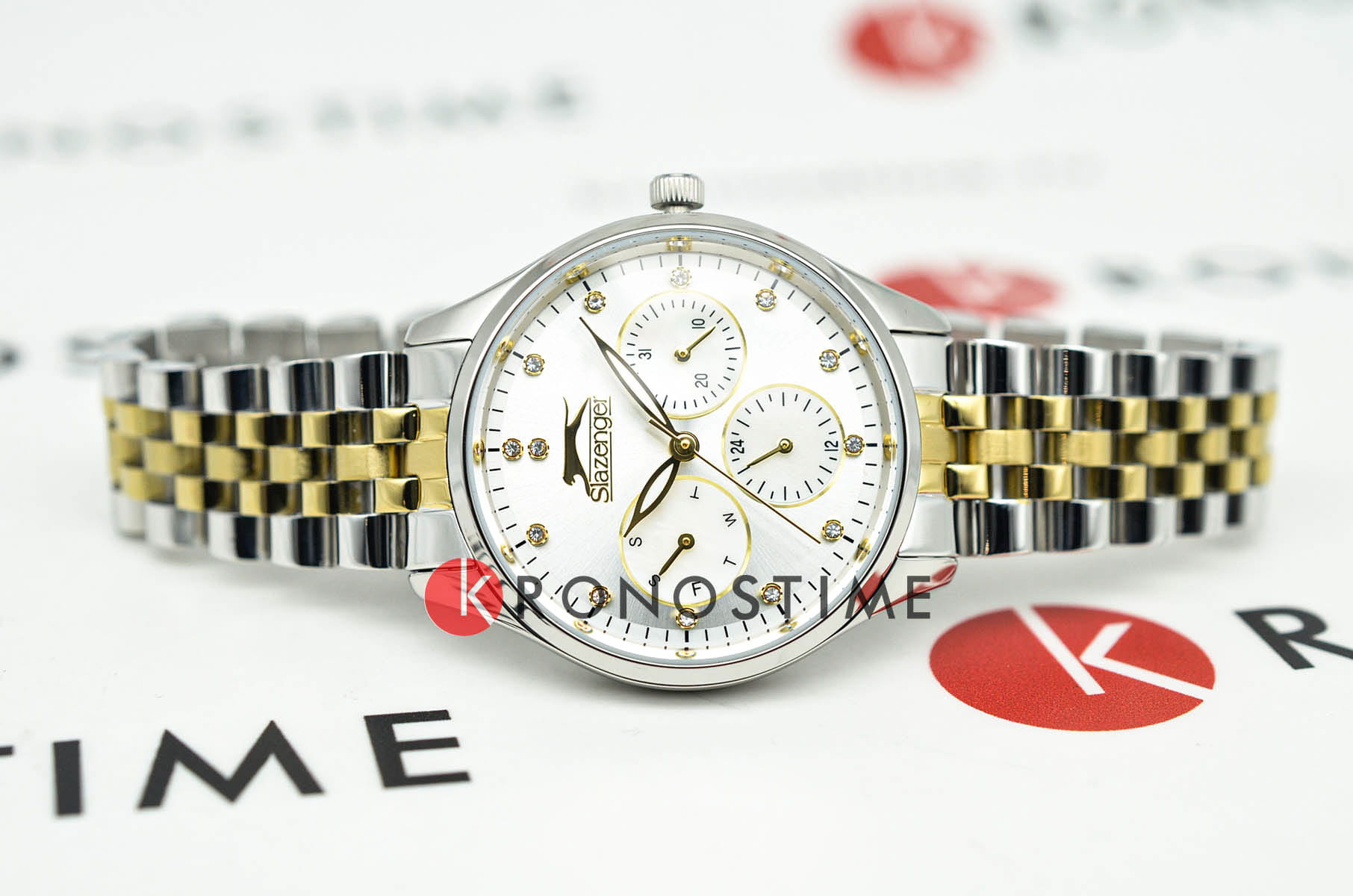 Женские кварцевые часы Slazenger — это элегантный и функциональный аксессуар. Корпус диаметром 34 мм и толщиной 11 мм выполнен из суперметалла. Циферблат серебристого цвета оформлен индексами и стрелками, украшен фианитами. Циферблат защищён минеральным стекломМинеральное стеклоМинеральное стекло представляет собой искусственно выращенный минерал кварца. Такое стекло отличается особой устойчивостью к повреждениям и царапинам. Уступает по некоторым качествам сапфировому стеклу.. Механизм — кварцевый. Часы оснащены индикацией дня недели, даты и 12/24-часового формата времени. Часы оснащены браслетом из суперметалла с IP-покрытиемIP-покрытиеМетод ионного напыления. Демонстрирует повышенную устойчивость к истиранию, окислению и химическим веществам. Под воздействием высокого давления и температуры около 1500°C молекулы металла надёжно соединяются с частицами корпуса часов. и раскладной застёжкойРаскладная застёжкаТакой тип застёжки используется только на браслетах из металла. Она никогда не раскрывается полностью, происходит разделение на 2 и более частей. Раскладывающая застёжка снизит вероятность потери часов к минимуму.. Водонепроницаемость 50 м позволяет использовать часы в повседневных условиях. Гарантия — 12 месяцев. Идеальный выбор для тех, кто ценит стиль, функциональность и качество.