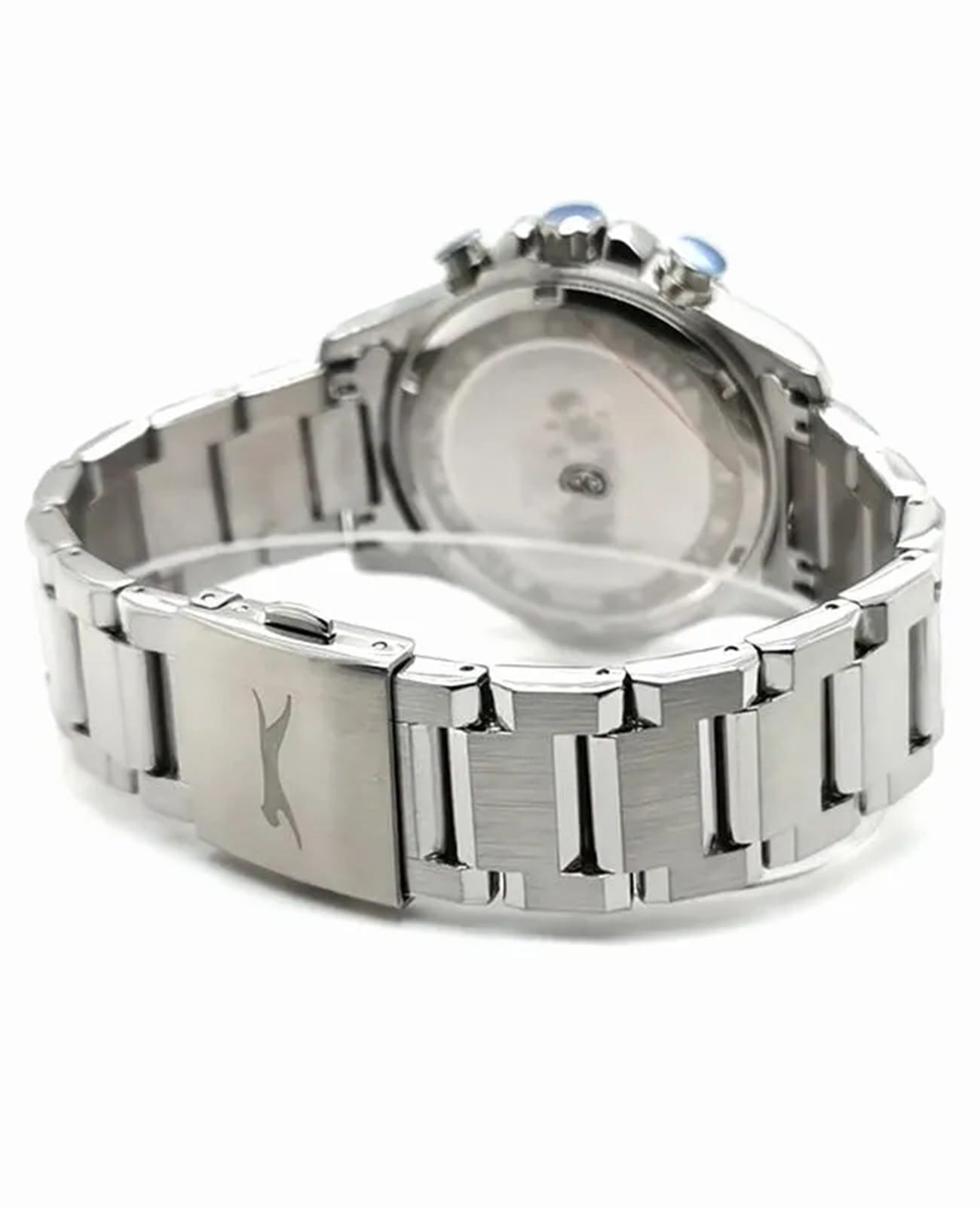 Мужские кварцевые часы Slazenger — это выразительный и функциональный аксессуар. Корпус диаметром 44 мм и толщиной 12 мм выполнен из нержавеющей стали 316L. БезельБезельВнешний ободок, закрепляющий стекло. В спортивных часах так называется поворотное кольцо с делениями на циферблате, выполняет роль таймера – замеряет отрезки времени на шкале. Неподвижный безель – элемент декора. Однонаправленно вращающийся безель на дайверских часах позволяет фиксировать моменты погружения и выныривания на поверхность. с IP-покрытиемIP-покрытиеМетод ионного напыления. Демонстрирует повышенную устойчивость к истиранию, окислению и химическим веществам. Под воздействием высокого давления и температуры около 1500°C молекулы металла надёжно соединяются с частицами корпуса часов.. Циферблат чёрного цвета оформлен индексами и стрелками. Циферблат защищён минеральным стекломМинеральное стеклоМинеральное стекло представляет собой искусственно выращенный минерал кварца. Такое стекло отличается особой устойчивостью к повреждениям и царапинам. Уступает по некоторым качествам сапфировому стеклу.. Механизм — кварцевый. Часы оснащены индикацией дня недели, даты и 12/24-часового формата времени. Стрелки и метки с люминесцентным покрытиемЛюминесцентное покрытиеПозволяет считывать показания времени в темноте. Производители наносят на стрелки, часовые индексы, безель или поверхность циферблата светонакопительный состав, дающий холодное свечение., обеспечивающим хорошую читаемость в темноте. Часы оснащены стальным браслетом с раскладной застёжкойРаскладная застёжкаТакой тип застёжки используется только на браслетах из металла. Она никогда не раскрывается полностью, происходит разделение на 2 и более частей. Раскладывающая застёжка снизит вероятность потери часов к минимуму.. Водонепроницаемость 100 м позволяет использовать часы для плавания и повседневного ношения. Гарантия — 12 месяцев. Идеальный выбор для тех, кто ценит стиль, функциональность и качество.