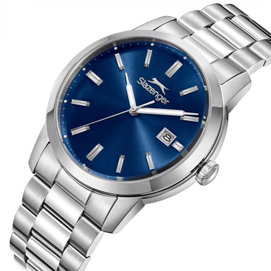 Мужские кварцевые часы Slazenger — это выразительный и функциональный аксессуар. Корпус диаметром 42 мм и толщиной 12 мм выполнен из нержавеющей стали 316L. Циферблат синего цвета оформлен индексами и стрелками. Циферблат защищён минеральным стекломМинеральное стеклоМинеральное стекло представляет собой искусственно выращенный минерал кварца. Такое стекло отличается особой устойчивостью к повреждениям и царапинам. Уступает по некоторым качествам сапфировому стеклу.. Механизм — кварцевый. Окошко даты расположено в положении 3 часов. Стрелки и метки с люминесцентным покрытиемЛюминесцентное покрытиеПозволяет считывать показания времени в темноте. Производители наносят на стрелки, часовые индексы, безель или поверхность циферблата светонакопительный состав, дающий холодное свечение., обеспечивающим хорошую читаемость в темноте. Часы оснащены стальным браслетом на застёжке «бабочка» с кнопкамиЗастёжка "бабочка"Такой вид застёжки дополняется предохранителями, помогающими избежать случайного раскрытия браслета. Обладают изящным исполнением. . Водонепроницаемость 100 м позволяет использовать часы для плавания и повседневного ношения. Гарантия — 12 месяцев. Идеальный выбор для тех, кто ценит стиль, функциональность и качество.