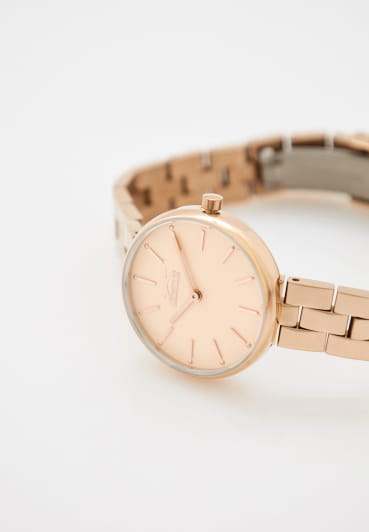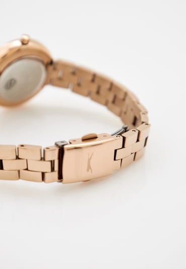 Женские кварцевые часы Slazenger — это элегантный аксессуар в миниатюрном корпусе. Корпус диаметром 30 мм и толщиной 8 мм выполнен из суперметалла с IP-покрытиемIP-покрытиеМетод ионного напыления. Демонстрирует повышенную устойчивость к истиранию, окислению и химическим веществам. Под воздействием высокого давления и температуры около 1500°C молекулы металла надёжно соединяются с частицами корпуса часов.. Циферблат бежевого цвета оформлен индексами и стрелками. Циферблат защищён минеральным стекломМинеральное стеклоМинеральное стекло представляет собой искусственно выращенный минерал кварца. Такое стекло отличается особой устойчивостью к повреждениям и царапинам. Уступает по некоторым качествам сапфировому стеклу.. Механизм — кварцевый калибр Y120. Часы оснащены браслетом из суперметалла на раскладной застёжкеРаскладная застёжкаТакой тип застёжки используется только на браслетах из металла. Она никогда не раскрывается полностью, происходит разделение на 2 и более частей. Раскладывающая застёжка снизит вероятность потери часов к минимуму.. Водонепроницаемость 30 м позволяет использовать часы в повседневных условиях. Идеальный выбор для тех, кто ценит стиль и качество.