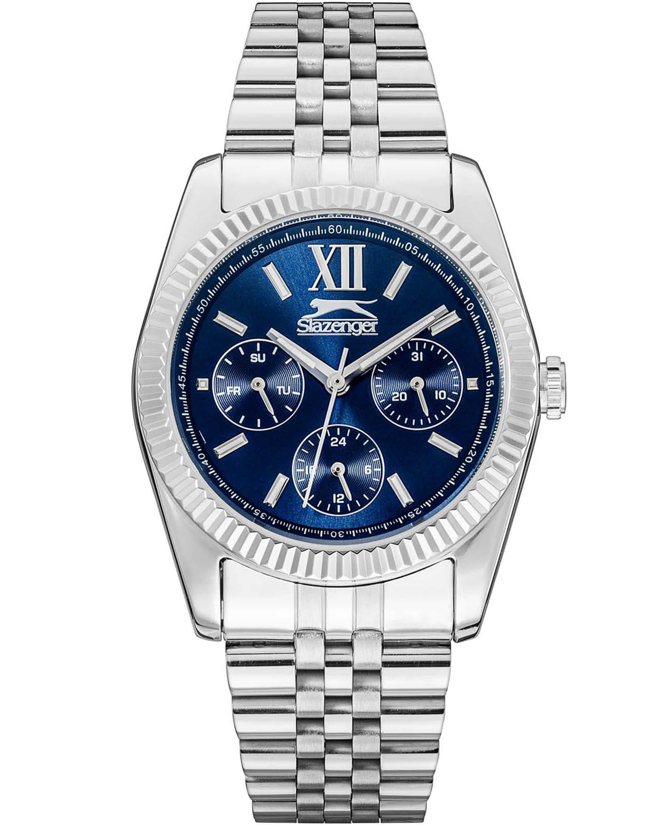 Женские элегантные наручные часы Slazenger SL.09.6556.4.01 сочетают в себе современный стиль и функциональность. Стильный корпус выполнен из суперметалла, придающий модели дополнительную прочность и элегантный внешний вид. Изысканный циферблат защищён минеральным стекломМинеральное стеклоМинеральное стекло представляет собой искусственно выращенный минерал кварца. Такое стекло отличается особой устойчивостью к повреждениям и царапинам. Уступает по некоторым качествам сапфировому стеклу., устойчивым к царапинам и повреждениям. Водонепроницаемость 5 АТМ позволяет использовать часы в повседневных условиях — при мытье рук или под лёгким дождём. Браслет из суперметалла и с раскладной застёжкойРаскладная застёжкаТакой тип застёжки используется только на браслетах из металла. Она никогда не раскрывается полностью, происходит разделение на 2 и более частей. Раскладывающая застёжка снизит вероятность потери часов к минимуму., обеспечивающий надёжную фиксацию и комфорт при ношении. На отдельные циферблаты вынесены указатели 24-часового времени, даты и дня недели, что делает использование часов особенно удобным в повседневной жизни. Cтрелки и метки покрыты люминесцентным покрытиемЛюминесцентное покрытиеПозволяет считывать показания времени в темноте. Производители наносят на стрелки, часовые индексы, безель или поверхность циферблата светонакопительный состав, дающий холодное свечение. для читаемости в условиях недостаточного освещения. Эта модель идеально подходит для женщин, ценящих стиль, функциональность и надёжность в одном аксессуаре.