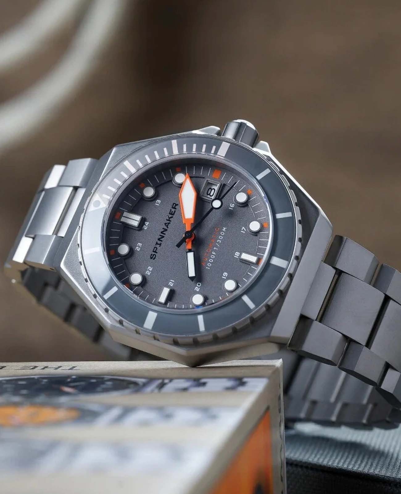 Мужские итальянские механические часы с автоподзаводом Spinnaker Dumas SP-5081-KK, механический механизм (автоматический калибр) с высокой точностью. Циферблат с люминесцентным покрытиемЛюминесцентное покрытиеПозволяет считывать показания времени в темноте. Производители наносят на стрелки, часовые индексы, безель или поверхность циферблата светонакопительный состав, дающий холодное свечение. стрелок, меток и безеляБезельВнешний ободок, закрепляющий стекло. В спортивных часах так называется поворотное кольцо с делениями на циферблате, выполняет роль таймера – замеряет отрезки времени на шкале. Неподвижный безель – элемент декора. Однонаправленно вращающийся безель на дайверских часах позволяет фиксировать моменты погружения и выныривания на поверхность. дополнен сапфировым стекломСапфировое стеклоПрочный и надёжный материал из кристалла сапфира синтетического происхождения, характеризующийся особой твёрдостью и устойчивостью к царапинам и повреждениям. с антибликовым покрытием, устойчивым к появлению царапин и обладающее высокой прозрачностью. Класс водозащиты: 300 метров (погружение с аквалангом). Корпус часов изготовлен из нержавеющей стали 316L. Благодаря обновленному безелюБезельВнешний ободок, закрепляющий стекло. В спортивных часах так называется поворотное кольцо с делениями на циферблате, выполняет роль таймера – замеряет отрезки времени на шкале. Неподвижный безель – элемент декора. Однонаправленно вращающийся безель на дайверских часах позволяет фиксировать моменты погружения и выныривания на поверхность. с IP-покрытиемIP-покрытиеМетод ионного напыления. Демонстрирует повышенную устойчивость к истиранию, окислению и химическим веществам. Под воздействием высокого давления и температуры около 1500°C молекулы металла надёжно соединяются с частицами корпуса часов. с более техническим изгибом, мастерство и точность изготовления часов Spinnaker Watches демонстрируются в безелеБезельВнешний ободок, закрепляющий стекло. В спортивных часах так называется поворотное кольцо с делениями на циферблате, выполняет роль таймера – замеряет отрезки времени на шкале. Неподвижный безель – элемент декора. Однонаправленно вращающийся безель на дайверских часах позволяет фиксировать моменты погружения и выныривания на поверхность. из закаленного стекла. Стальной браслет на раскладной застёжкеРаскладная застёжкаТакой тип застёжки используется только на браслетах из металла. Она никогда не раскрывается полностью, происходит разделение на 2 и более частей. Раскладывающая застёжка снизит вероятность потери часов к минимуму..