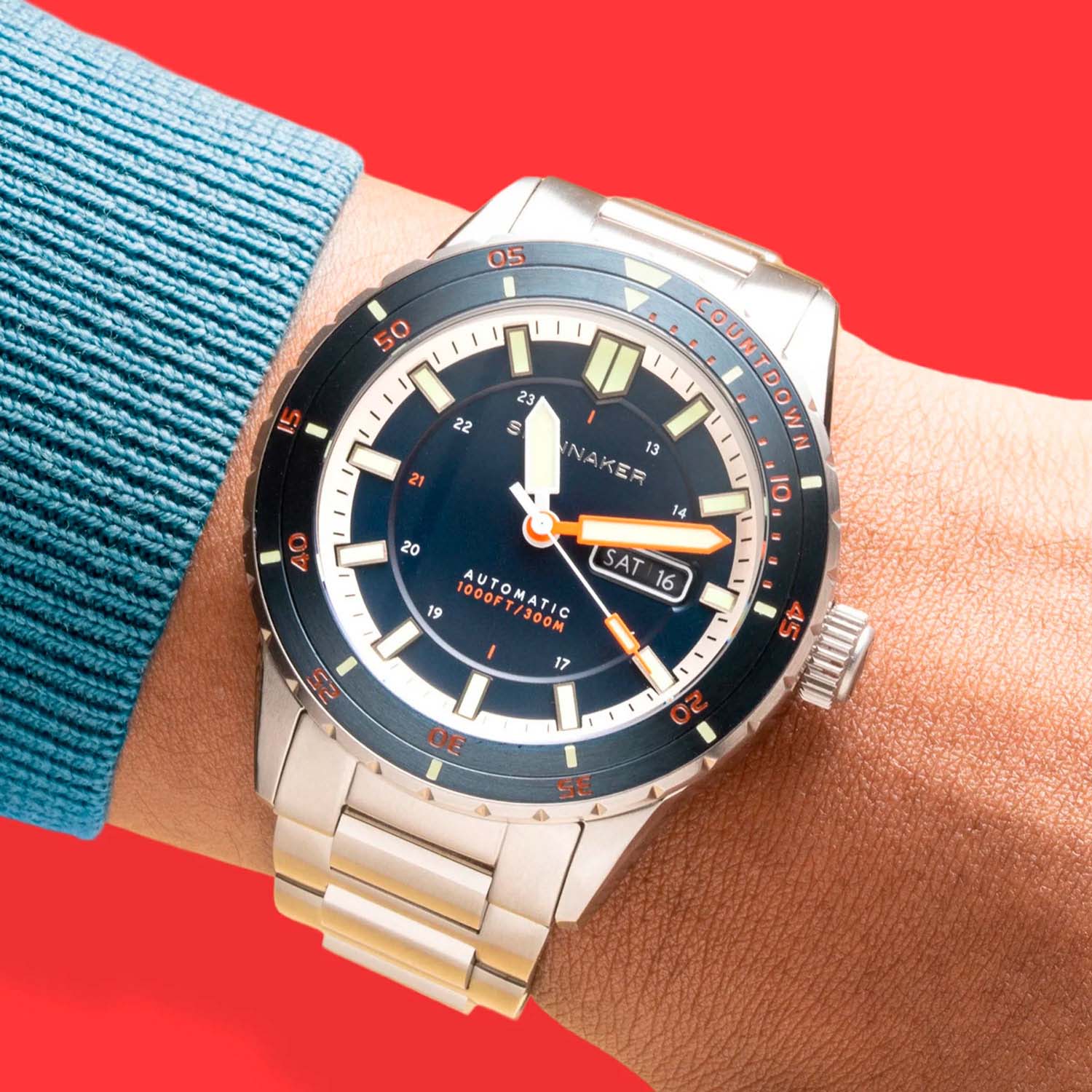 Мужские итальянские часы Spinnaker Hass SP-5099-44 с надёжным автоматическим механизмом. Сапфировое стеклоСапфировое стеклоПрочный и надёжный материал из кристалла сапфира синтетического происхождения, характеризующийся особой твёрдостью и устойчивостью к царапинам и повреждениям. с антибликовым покрытиемАнтибликовое покрытиеСлой оксида металла в 0,13-0,3 микрон, благодаря которому стекло часов не бликует и не отражает свет. Антибликовое покрытие уменьшает отражение света в 10 раз, обеспечивая отличную читаемость показателей циферблата., устойчивое к появлению царапин и обладающее высокой прозрачностью. Класс водозащиты: 300 метров, позволит плавать, нырять и заниматься другими водными видами спорта. Корпус часов изготовлен из нержавеющей стали с поворотным безелемБезельВнешний ободок, закрепляющий стекло. В спортивных часах так называется поворотное кольцо с делениями на циферблате, выполняет роль таймера – замеряет отрезки времени на шкале. Неподвижный безель – элемент декора. Однонаправленно вращающийся безель на дайверских часах позволяет фиксировать моменты погружения и выныривания на поверхность. с IP-покрытиемIP-покрытиеМетод ионного напыления. Демонстрирует повышенную устойчивость к истиранию, окислению и химическим веществам. Под воздействием высокого давления и температуры около 1500°C молекулы металла надёжно соединяются с частицами корпуса часов.. Браслет выполнен из нержавеющей стали на раскладной застёжкеРаскладная застёжкаТакой тип застёжки используется только на браслетах из металла. Она никогда не раскрывается полностью, происходит разделение на 2 и более частей. Раскладывающая застёжка снизит вероятность потери часов к минимуму.. Стрелки и метки с люминесцентным покрытиемЛюминесцентное покрытиеПозволяет считывать показания времени в темноте. Производители наносят на стрелки, часовые индексы, безель или поверхность циферблата светонакопительный состав, дающий холодное свечение.. Окошко дня недели и даты находится в положении 3 часа.