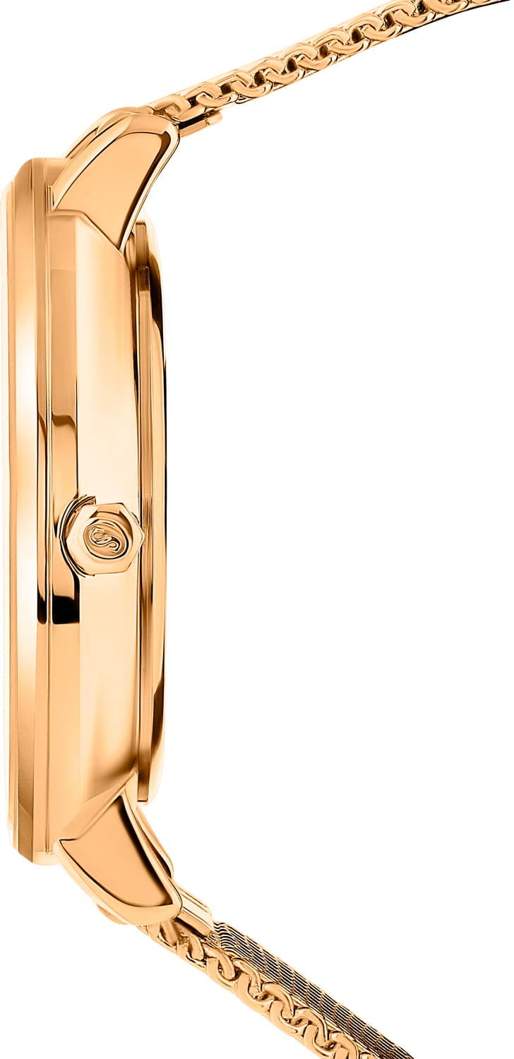Stuhrling 3946.5 — элегантные женские часы, объединяющие строгую классику и современную функциональность. Корпус из нержавеющей стали с PVD-покрытиемPVDУльтратонкое покрытие наносится в технике вакуумного напыления, сочетает в себе нитрид титана особой прочности со слоем золота или оксида хрома. Несёт в себе декоративную или защитную функцию. создают ощущение монолитной надёжности, а глубокий циферблат украшенный кристаллом придаёт модели выразительность и характер. Стальной браслет миланского плетения с PVD-покрытиемPVDУльтратонкое покрытие наносится в технике вакуумного напыления, сочетает в себе нитрид титана особой прочности со слоем золота или оксида хрома. Несёт в себе декоративную или защитную функцию. на раскладном замкеРаскладной замокДанный вариант застежки используется только на часах с металлическим браслетом. Отличительная особенность такого крепления в том, что длина браслета становится универсальной и вы можете самостоятельно отрегулировать нужный вам размер – застежка просто двигается по браслету часов.. Прочное стекло KrysternaKrysternaKrysterna — инновационное стекло для наручных часов. Благодаря уникальной структуре, Krysterna объединяет ключевые преимущества двух материалов: твердость сапфира, защищающую от царапин, и гибкость минерального стекла, обеспечивающую устойчивость к деформациям. Такая комбинация делает его идеальным решением для часов, подверженных экстремальным нагрузкам, сохраняя при этом оптическую прозрачность. защищает циферблат от царапин, а надёжный кварцевый механизм гарантирует стабильную точность. Stuhrling — выбор уверенной девушки, ценящей сочетание функциональности, лаконичного дизайна и безупречной отделки.