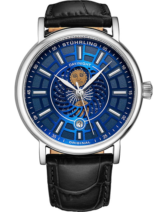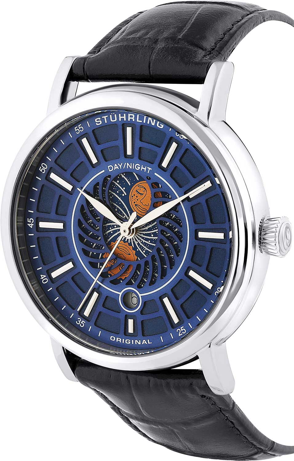 Stuhrling 899.03 — выразительные мужские часы с уникальным дизайнерским решением. Глубокий циферблат с геометрическим узором придаёт модели эффектный и современный вид. Корпус из нержавеющей стали отличается аккуратной полировкой и плавными формами, подчёркивающими элегантность классического стиля. Прочное стекло KrysternaKrysternaKrysterna — инновационное стекло для наручных часов. Благодаря уникальной структуре, Krysterna объединяет ключевые преимущества двух материалов: твердость сапфира, защищающую от царапин, и гибкость минерального стекла, обеспечивающую устойчивость к деформациям. Такая комбинация делает его идеальным решением для часов, подверженных экстремальным нагрузкам, сохраняя при этом оптическую прозрачность. защищает поверхность от царапин, сохраняя прозрачность и глубину цвета. Чёрный ремень из натуральной кожи на стандартной застежке, обеспечивает комфорт и надёжность при ежедневном ношении. Stuhrling — это гармония механической точности и выразительного дизайна, созданная для мужчин, ценящих стиль и совершенство деталей.