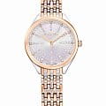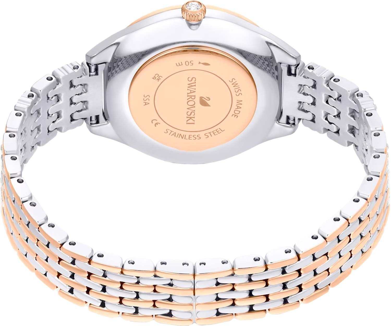 Часы Swarovski 5649987– это воплощение изысканного дизайна и функциональности, созданное для тех, кто ценит красоту и точность. Серебристый круглый корпус из нержавеющей стали оснащен безелемБезельВнешний ободок, закрепляющий стекло. В спортивных часах так называется поворотное кольцо с делениями на циферблате, выполняет роль таймера – замеряет отрезки времени на шкале. Неподвижный безель – элемент декора. Однонаправленно вращающийся безель на дайверских часах позволяет фиксировать моменты погружения и выныривания на поверхность. с PVDPVDУльтратонкое покрытие наносится в технике вакуумного напыления, сочетает в себе нитрид титана особой прочности со слоем золота или оксида хрома. Несёт в себе декоративную или защитную функцию. покрытием, украшенным паве из тридцати мерцающих кристаллов. Под минеральным стекломМинеральное стеклоМинеральное стекло представляет собой искусственно выращенный минерал кварца. Такое стекло отличается особой устойчивостью к повреждениям и царапинам. Уступает по некоторым качествам сапфировому стеклу. открывается серебристый циферблат украшен гильошированным узором и кристаллами для индексных меток. Рифленая заводная головка украшена кристаллом круглой огранки. Стальной браслет с частичным PVDPVDУльтратонкое покрытие наносится в технике вакуумного напыления, сочетает в себе нитрид титана особой прочности со слоем золота или оксида хрома. Несёт в себе декоративную или защитную функцию. покрытием и застежкой «бабочка»Застёжка "бабочка"Такой вид застёжки дополняется предохранителями, помогающими избежать случайного раскрытия браслета. Обладают изящным исполнением. , декорирован кристаллами Swarovski. Водозащита 50WR делает их устойчивыми к влаге, позволяя наслаждаться стильным аксессуаром в любых условиях.
