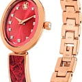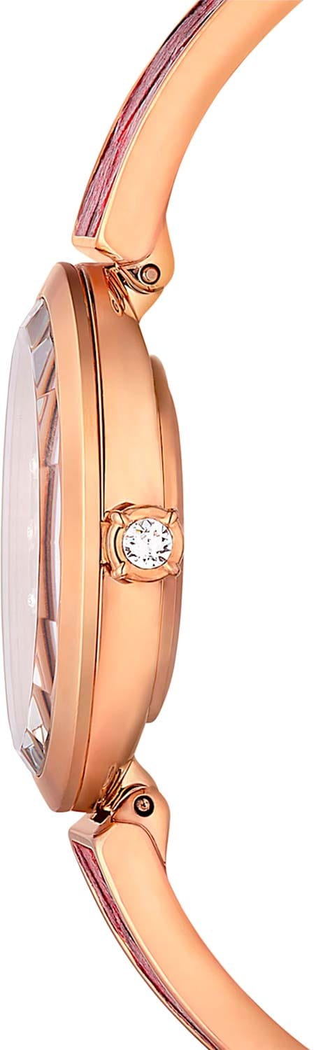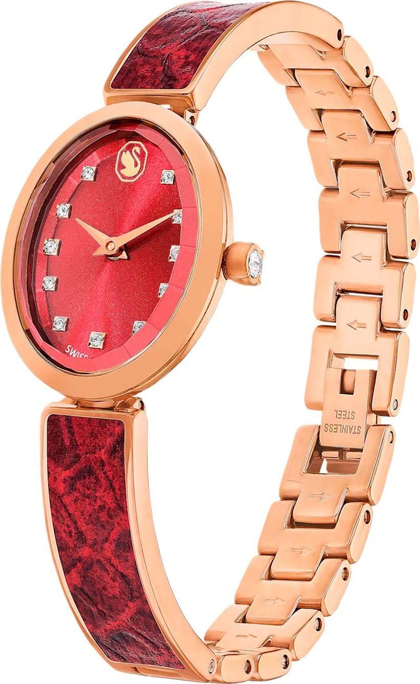 Часы Swarovski 5675998 представляют собой воплощение утонченной элегантности и функциональности, идеально подходящие для современных женщин. Эти швейцарские часы оснащены надежным кварцевым механизмом, обеспечивающим высокую точность. Овальный корпус выполнен из нержавеющей стали розовым PVDPVDУльтратонкое покрытие наносится в технике вакуумного напыления, сочетает в себе нитрид титана особой прочности со слоем золота или оксида хрома. Несёт в себе декоративную или защитную функцию.-покрытием, придающим ему изысканный вид. Под минеральным стекломМинеральное стеклоМинеральное стекло представляет собой искусственно выращенный минерал кварца. Такое стекло отличается особой устойчивостью к повреждениям и царапинам. Уступает по некоторым качествам сапфировому стеклу. скрывается циферблат красного цвета, выполненный по технологии Sunray (солнечные лучи), с логотипом Swarovski в виде лебедя в положении 12 часов и метками в виде точек из кристаллов круглой огранки. Изящные стрелки в стиле Dauphine гармонично дополняют дизайн, а заводная головка украшена кристаллом круглой огранки, добавляя дополнительный акцент. Стальной регулируемый браслет ювелирной застежкой с розовым PVDPVDУльтратонкое покрытие наносится в технике вакуумного напыления, сочетает в себе нитрид титана особой прочности со слоем золота или оксида хрома. Несёт в себе декоративную или защитную функцию. покрытием декорирован кожаной вставкой, имитирующей кожу Дракона. Водозащита 50WR позволяет носить часы в различных условиях, не беспокоясь о попадании влаги. Эти часы станут идеальным аксессуаром как для повседневного, так и для вечернего наряда, подчеркивая индивидуальность и изысканный вкус их обладательницы.