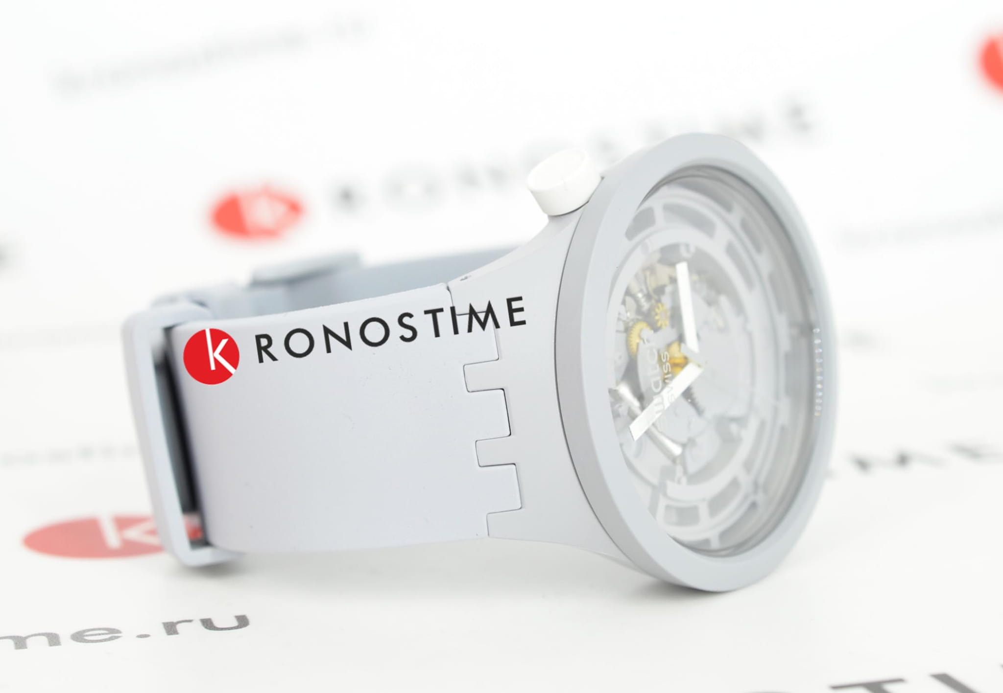 Часы Swatch SB03M100 — это стильный и современный аксессуар для тех, кто ценит лёгкость и комфорт. Часы идеально подойдут как для мужчин, так и для женщин. Прекрасный образец часов, выполненных полностью из материалов биологического происхождения: открытый механизм и биокерамикаБиокерамикаБиокерамика — это материал, который на две трети состоит из керамики, на одну треть — из биопластика. Он сочетает в себе лучшие качества обоих материалов и обладает прочностью и шелковистой на ощупь текстурой., которая создает ощущение шелковистости. Впечатляющий дизайн серого цвета — инновация в своем лучшем проявлении. На часовую, минутную стрелки нанесено люминесцентное покрытиеЛюминесцентное покрытиеПозволяет считывать показания времени в темноте. Производители наносят на стрелки, часовые индексы, безель или поверхность циферблата светонакопительный состав, дающий холодное свечение., которое светится в темноте, создавая необычное изображение. Водозащита 30 метров делает часы практичными для повседневного использования. Эти часы подойдут для повседневного ношения и станут ярким акцентом в вашем наряде.