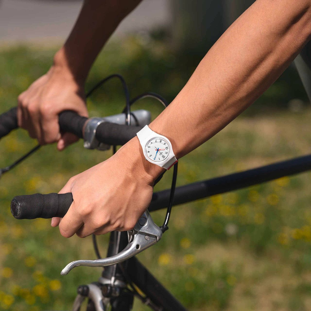 Часы Swatch SO28W400 — это стильный и современный аксессуар, который идеально подходит для повседневного ношения. Часы имеют белый корпус из биоматериала и белый циферблат с черными цифрами и окошком даты в положении "6 часов". Стрелки со светящимися в темноте кончиками с люминесцентным покрытиемЛюминесцентное покрытиеПозволяет считывать показания времени в темноте. Производители наносят на стрелки, часовые индексы, безель или поверхность циферблата светонакопительный состав, дающий холодное свечение. помогают ориентироваться ночью. Стекло часов изготовлено из многослойного акрила, устойчивого к царапинам и ударам. Ремешок часов сине-бело-красного цвета выполнен из силикона и имеет регулируемую длину, на классической застежке. Внутри часов установлен надежный кварцевый механизм, который обеспечивает точность хода. Эти часы водонепроницаемы до 30 метров, что позволяет не беспокоиться о случайных брызгах или дождевых каплях. Swatch SO28W400 — это идеальный выбор для тех, кто ценит сочетание стиля, комфорта и функциональности в одном аксессуаре.