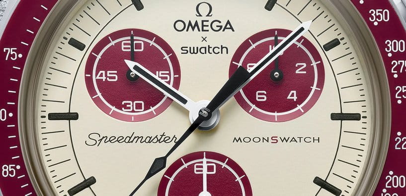 Часы Swatch Bioceramic Moonswatch MISSION TO PLUTO SO33M101 — это стильный и современный аксессуар для тех, кто ценит лёгкость и комфорт. Корпус диаметром 42 мм и пряжка этих уникальных часов изготовлены из биокерамикиБиокерамикаБиокерамика — это материал, который на две трети состоит из керамики, на одну треть — из биопластика. Он сочетает в себе лучшие качества обоих материалов и обладает прочностью и шелковистой на ощупь текстурой., а также ремешок VELCRO®. Модель оснащена циферблатом и бордовым биокерамическим безелемБезельВнешний ободок, закрепляющий стекло. В спортивных часах так называется поворотное кольцо с делениями на циферблате, выполняет роль таймера – замеряет отрезки времени на шкале. Неподвижный безель – элемент декора. Однонаправленно вращающийся безель на дайверских часах позволяет фиксировать моменты погружения и выныривания на поверхность. на который нанесена шкала тахиметраТахиметрРазмеченная шкала, располагается на ободке или безеле часов. Тахиметр позволяет рассчитать скорость на определённом участке пути, расстояние измеряется в километрах или милях.. Общими характеристиками всех часов в данной коллекции являются конструкция стекла из биоматериала, «скрытая» в центре кристалла буква "S", тонкий и изящный круговой узор на внешнем кольце циферблата и заглубленных мини-циферблатах, гладкие ушки с заостренными концами, культовая точка над отметкой 90 на тахиметрической шкале безеля и, конечно же, уникальный материал – биокерамика. Индексы, часовая, минутная и секундная стрелки хронографаХронографФункция позволяет измерять отрезки времени с особой точностью: часы, минуты, секунды. Верным признаком хронографа является наличие на циферблате 3 дополнительных окошек-счётчиков. покрыты люминесцентным покрытиемЛюминесцентное покрытиеПозволяет считывать показания времени в темноте. Производители наносят на стрелки, часовые индексы, безель или поверхность циферблата светонакопительный состав, дающий холодное свечение. Super-LumiNova® класса А, благодаря чему они светятся в темноте. Циферблаты каждых часов в данной коллекции украшены фирменным знаком OMEGA X Swatch, культовым логотипом Speedmaster и логотипом MoonSwatch.