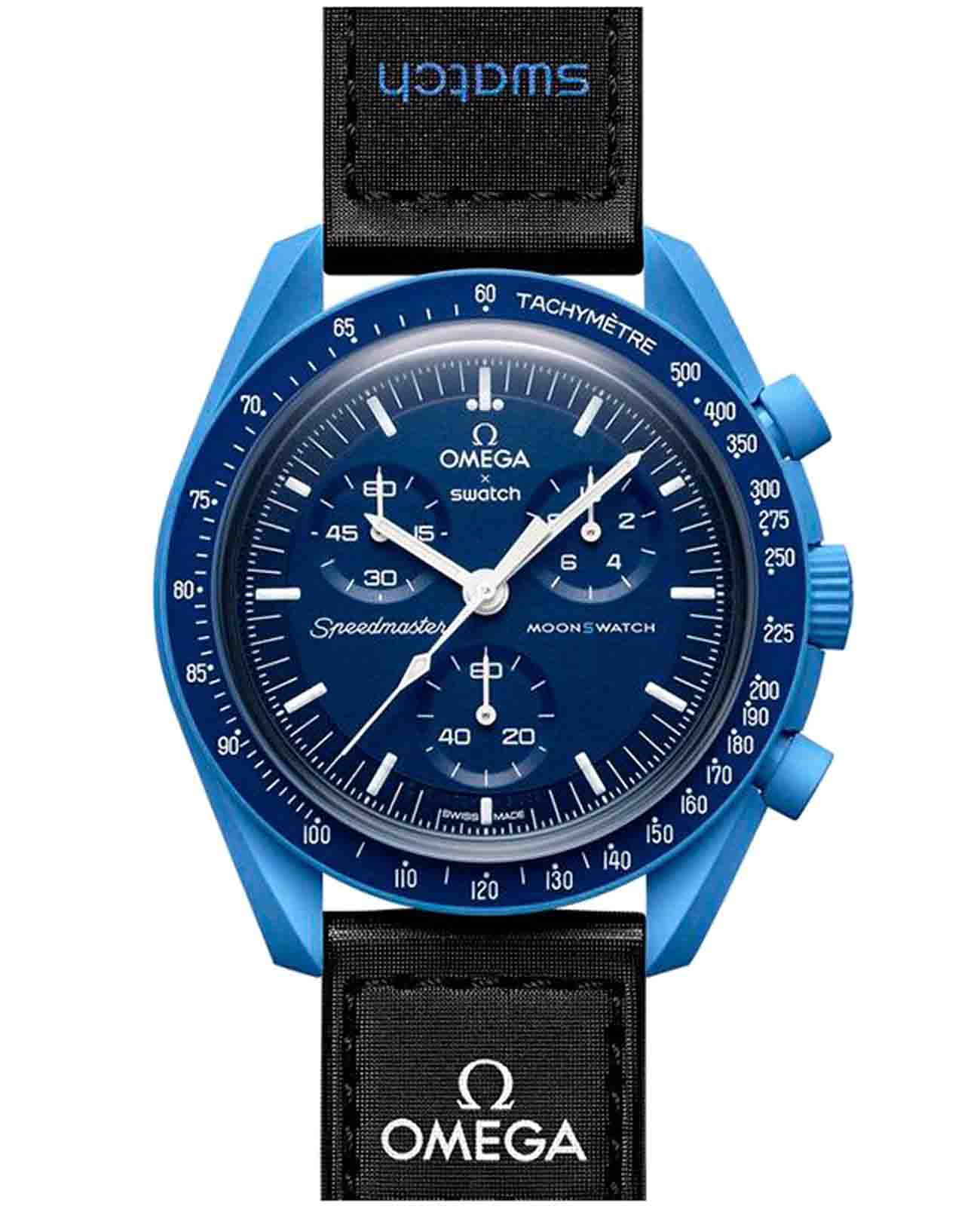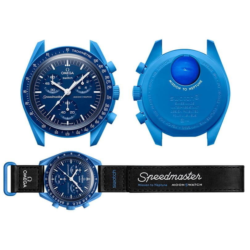 Швейцарские часы Swatch x Omega Bioceramic Moonswatch Mission to Neptune SO33N100 с хронографом