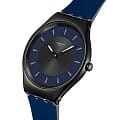 Часы Swatch SYXB108 — это стильный и современный аксессуар для тех, кто ценит лёгкость и комфорт. Часы идеально подойдут как для мужчин, так и для женщин. Эти ультратонкие часы имеют черный циферблат с радиальной полировкой, темно-синим внешним кольцевым принтом и серыми часовыми индексами, а также черные часовую и минутную стрелки с люминесцентным покрытиемЛюминесцентное покрытиеПозволяет считывать показания времени в темноте. Производители наносят на стрелки, часовые индексы, безель или поверхность циферблата светонакопительный состав, дающий холодное свечение.. Блестящий корпус и пряжка из нержавеющей стали с PVDPVDУльтратонкое покрытие наносится в технике вакуумного напыления, сочетает в себе нитрид титана особой прочности со слоем золота или оксида хрома. Несёт в себе декоративную или защитную функцию. покрытием прекрасно сочетаются с матовым темно-синим ремешком с тренчиком в тон и серой изнанкой. Водозащита 30 метров делает часы практичными для повседневного использования. Эти часы подойдут для повседневного ношения и станут ярким акцентом в вашем наряде.