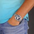 Мужские швейцарские наручные часы-хронографХронографФункция позволяет измерять отрезки времени с особой точностью: часы, минуты, секунды. Верным признаком хронографа является наличие на циферблате 3 дополнительных окошек-счётчиков. Swiss Military by Chrono SM34013.04, кварцевый механизм с высокой точностью. Класс водозащиты: 100 метров, позволит плавать, нырять и заниматься другими водными видами спорта. Стрелки с люминесцентным покрытиемЛюминесцентное покрытиеПозволяет считывать показания времени в темноте. Производители наносят на стрелки, часовые индексы, безель или поверхность циферблата светонакопительный состав, дающий холодное свечение.. Корпус и браслет часов изготовлены из нержавеющей стали. Минеральное стеклоМинеральное стеклоМинеральное стекло представляет собой искусственно выращенный минерал кварца. Такое стекло отличается особой устойчивостью к повреждениям и царапинам. Уступает по некоторым качествам сапфировому стеклу.. Браслет с раскладной застёжкойРаскладная застёжкаТакой тип застёжки используется только на браслетах из металла. Она никогда не раскрывается полностью, происходит разделение на 2 и более частей. Раскладывающая застёжка снизит вероятность потери часов к минимуму..