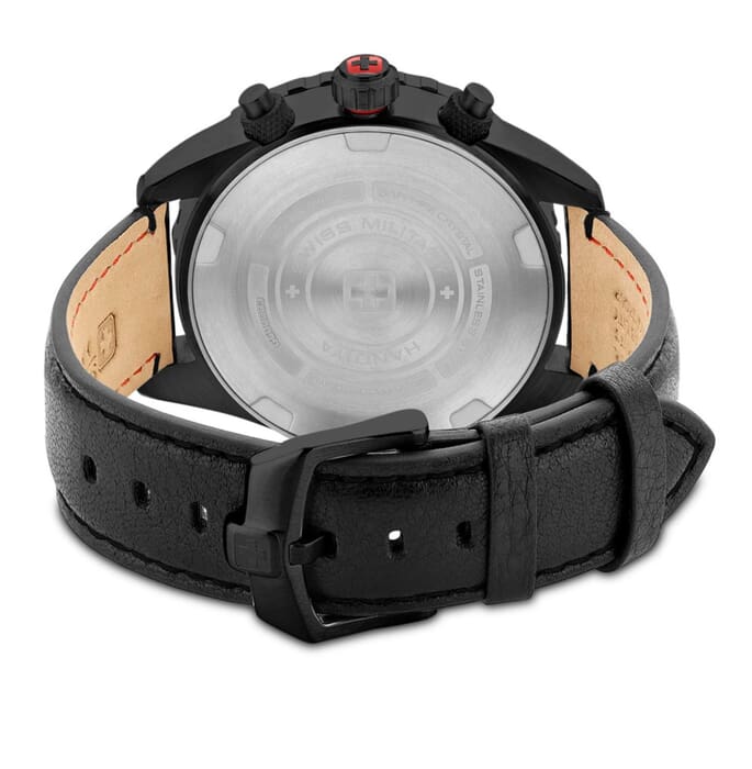 Мужские швейцарские часы Swiss Military Hanowa SMWGC0000331 – это элегантные часы, сочетающие в себе классический дизайн и современную функциональность. Корпус из нержавеющей стали диаметром 45 мм сбалансирован и элегантен. Сапфировое стеклоСапфировое стеклоПрочный и надёжный материал из кристалла сапфира синтетического происхождения, характеризующийся особой твёрдостью и устойчивостью к царапинам и повреждениям. с антибликовым покрытием защищает циферблат от царапин и обеспечивает отличную читаемость при любом освещении. Кожаный ремешок на стандартной застёжке идеально дополняют дизайн часов, обеспечивая комфортное ношение. Люминесцентное покрытиеЛюминесцентное покрытиеПозволяет считывать показания времени в темноте. Производители наносят на стрелки, часовые индексы, безель или поверхность циферблата светонакопительный состав, дающий холодное свечение. стрелок и меток позволит вам следить за временем даже в полной темноте. Вращающийся стальной безельБезельВнешний ободок, закрепляющий стекло. В спортивных часах так называется поворотное кольцо с делениями на циферблате, выполняет роль таймера – замеряет отрезки времени на шкале. Неподвижный безель – элемент декора. Однонаправленно вращающийся безель на дайверских часах позволяет фиксировать моменты погружения и выныривания на поверхность. с PVD-покрытиемPVDУльтратонкое покрытие наносится в технике вакуумного напыления, сочетает в себе нитрид титана особой прочности со слоем золота или оксида хрома. Несёт в себе декоративную или защитную функцию.. Часы оснащены центральной секундной стрелкой и окошком даты в положении «6 часов», что делает их функциональными для повседневного использования. Завинчивающаяся прозрачная задняя крышка, тахиметрТахиметрРазмеченная шкала, располагается на ободке или безеле часов. Тахиметр позволяет рассчитать скорость на определённом участке пути, расстояние измеряется в километрах или милях. по внешнему краю. Водонепроницаемость до 100 метров. Идеальный выбор для тех, кто ценит качество и долговечность.