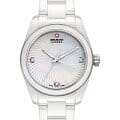 Женские наручные часы Swiss Military Hanowa SMWLG0005101 сочетают в себе элегантный дизайн и надежность современных технологий. Модель обладает круглым корпусом, изготовленным из высокотехнологичной керамикиВысокотехнологичная керамикаИнновационный запатентованный Rado материал с гладкой или матовой поверхностью. Керамика за счёт кристаллической структуры обладает повышенной устойчивостью от возникновения царапин. Материал способен принимать температуру тела человека, обеспечивая невероятный комфорт при ношении., что обеспечивает высокую устойчивость к царапинам и легкость ношения. Браслет также выполнен из керамикиВысокотехнологичная керамикаИнновационный запатентованный Rado материал с гладкой или матовой поверхностью. Керамика за счёт кристаллической структуры обладает повышенной устойчивостью от возникновения царапин. Материал способен принимать температуру тела человека, обеспечивая невероятный комфорт при ношении. на застёжке-бабочке с кнопкамиЗастёжка "бабочка"Такой вид застёжки дополняется предохранителями, помогающими избежать случайного раскрытия браслета. Обладают изящным исполнением. , гарантируя комфортное ношение в течение дня. Циферблат оснащен люминесцентным покрытиемЛюминесцентное покрытиеПозволяет считывать показания времени в темноте. Производители наносят на стрелки, часовые индексы, безель или поверхность циферблата светонакопительный состав, дающий холодное свечение., что обеспечивает удобство чтения времени в темноте. Для защиты используется прочное стекло, устойчивое к повреждениям. Часы работают на кварцевом механизме, который гарантирует точность хода и минимальную погрешность. Модель имеет класс водонепроницаемости 50WR, что позволяет использовать их в быту, например, при мытье рук или дожде, но не рекомендуется для плавания или ныряния. Элегантный дизайн и функциональность делают эти часы идеальным выбором для повседневного использования.