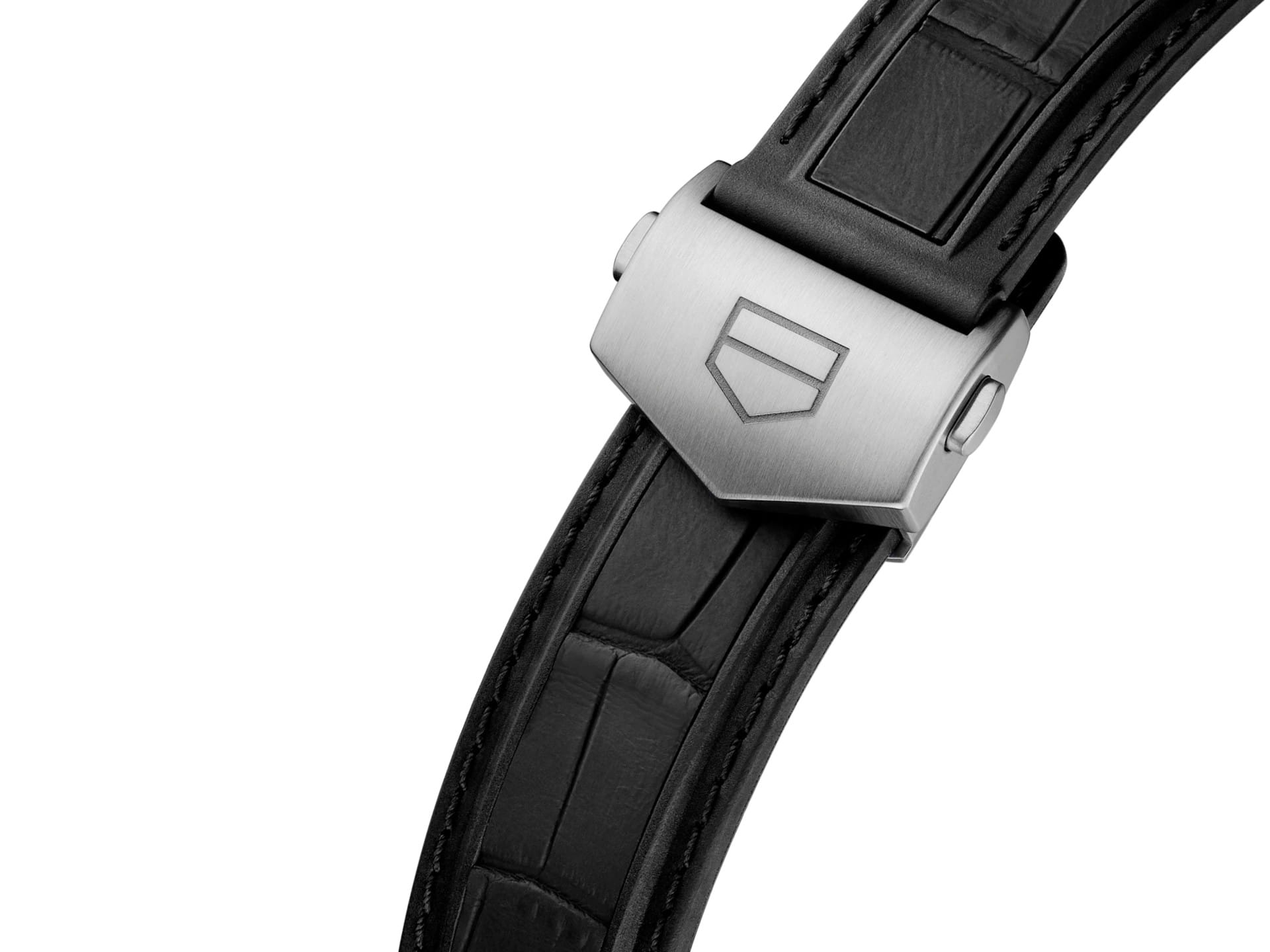 Часы, открывающие глаза на красоту: безель покрыт полимерным материалом с узором черепашьего панциря, а ремешок с раскладывающейся застежкой выполнен из высококачественного каучука с эффектом кожи аллигатора. Стрелки и индексы с белым покрытием Super-LumiNova® мгновенно передают время и необходимую информацию. Швейцарские мужские часы TAG Heuer Aquaracer Professional 300 WAY201N.FT6177, механический механизм (автоматический калибр) с высокой точностью. Сапфировое стекло устойчивое к появлению царапин, обладающее высокой прозрачностью. Класс водозащиты: 300 метров, позволит плавать, нырять и заниматься другими водными видами спорта. Корпус часов изготовлен из титана, серебристого цвета.