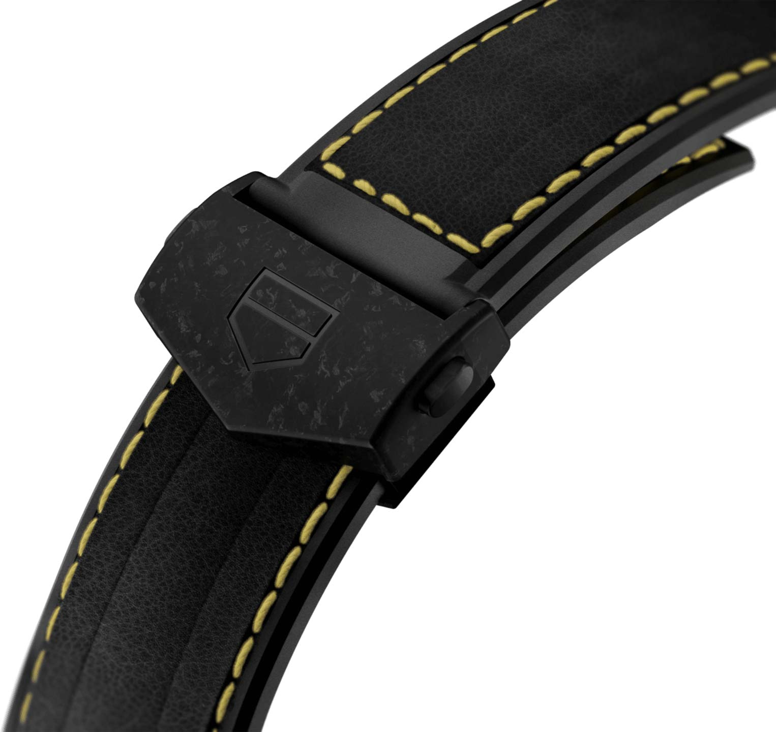 Оригинальные и бескомпромиссные часы швейцарского качества, подчеркнут вашу индивидуальность и изысканный вкус. Carrera Calibre Heuer 02T. Лимитированная серия. Скелетонизированные часы-хронографХронографФункция позволяет измерять отрезки времени с особой точностью: часы, минуты, секунды. Верным признаком хронографа является наличие на циферблате 3 дополнительных окошек-счётчиков. с секундомеромСекундомерСекундоме́р — прибор, способный измерять интервалы времени с точностью до долей секунды. и тахиметром. Турбийон. В механизме 33 камня, частота 28800 полуколебаний в час. Запас хода 65 часов. Рифленая стальная с PVDPVDУльтратонкое покрытие наносится в технике вакуумного напыления, сочетает в себе нитрид титана особой прочности со слоем золота или оксида хрома. Несёт в себе декоративную или защитную функцию. покрытием заводная головка с каучуковой накладкой. Циферблат с люминесцентным покрытиемЛюминесцентное покрытиеПозволяет считывать показания времени в темноте. Производители наносят на стрелки, часовые индексы, безель или поверхность циферблата светонакопительный состав, дающий холодное свечение. стрелок и меток, дополнен сапфировым стекломСапфировое стеклоПрочный и надёжный материал из кристалла сапфира синтетического происхождения, характеризующийся особой твёрдостью и устойчивостью к царапинам и повреждениям., устойчивым к появлению царапин и обладающее высокой прозрачностью. Стальная завинчивающаяся задняя крышка с сапфировым стеклом позволит наблюдать вам за работой точнейшего механизма. Накладные полированные и матовые индексы. Накладная эмблема TAG Heuer. Браслет с с раскладной застёжкойРаскладная застёжкаТакой тип застёжки используется только на браслетах из металла. Она никогда не раскрывается полностью, происходит разделение на 2 и более частей. Раскладывающая застёжка снизит вероятность потери часов к минимуму.. Застежка с системой блокировки. Дизайн этих роскошных часов вдохновлен автомобильными гонками, которые так любят настоящие мужчины.