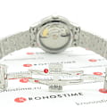 Утончённая модель имеет действительно шикарное исполнение циферблата с римскими цифрами, где лаконичность переплетается с великолепием и изяществом. По окружности он дополнен характерным для линейки узором, в середине расположена вставка из белого перламутра. Циферблат инкрустирован 32 бриллиантами цвета Top Wesselton в 0, 064 карат, их сияние никого не оставит равнодушным. Внутри корпуса из нержавеющей стали 316L находится автоматический механизм ETA Powermatic 80Powermatic 80Эксклюзивный калибр от швейцарской компании ETA с увеличенным запасом хода до 80 часов за счёт удлинённой заводной пружины. Характеризуется улучшенной системой спуска со сниженным трением. с запасом хода 80 часов. Движения деталей прослеживаются сквозь прозрачную заднюю крышку, оформленную узором «женевские волны». Стекло из сапфира с двусторонней антибликовой обработкой. Надёжный стальной браслет. Водонепроницаемость до 5 бар. . Апертура даты. Габариты: 32 x 32 x 10,7 мм.