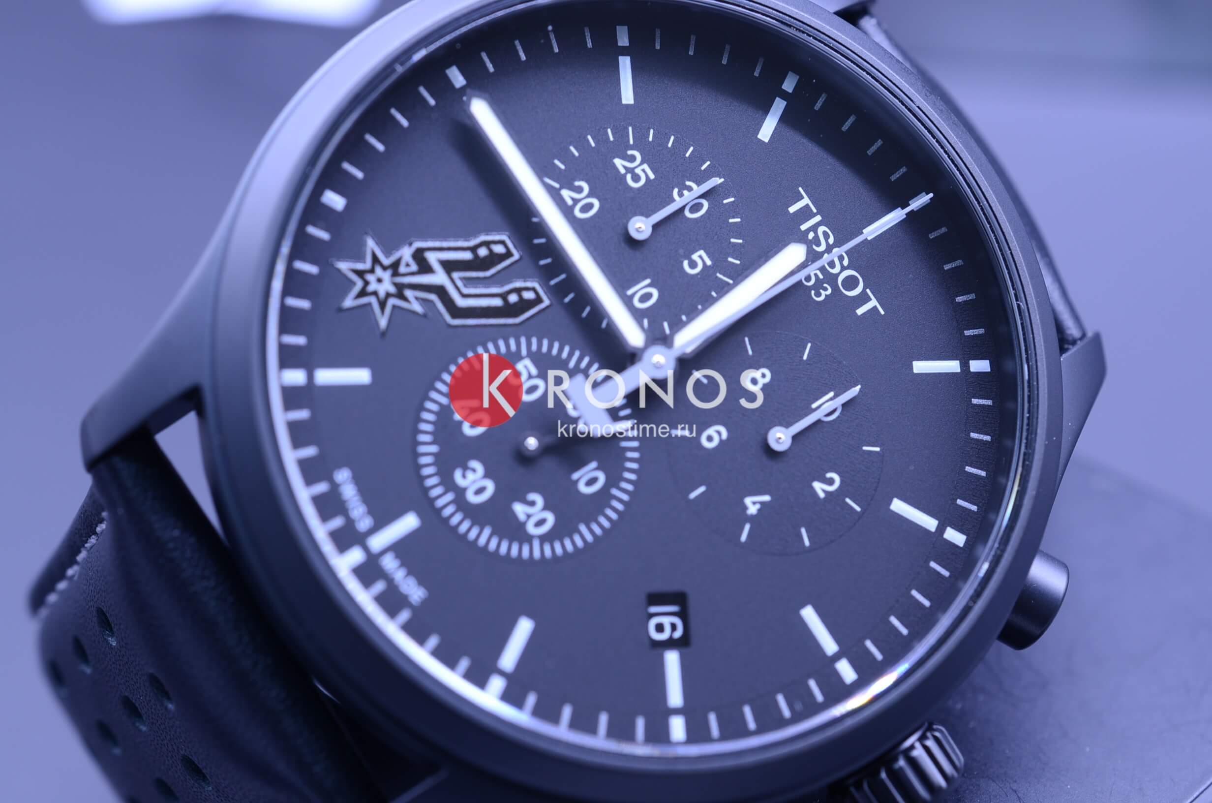Чёрный циферблат украшен логотипом команды, такой аксессуар станет идеальным подарком для фанатов NBA. Идеально смотрится ремешок из натуральной кожи с перфорацией, задняя крышка украшена эмблемой NBA. Высокоточный кварцевый механизм ETA G10.212. Чёрное PVD-покрытиеPVDУльтратонкое покрытие наносится в технике вакуумного напыления, сочетает в себе нитрид титана особой прочности со слоем золота или оксида хрома. Несёт в себе декоративную или защитную функцию. стального корпуса. Водонепроницаемость при давлении 10 бар. Люминесцентная подсветкаЛюминесцентное покрытиеПозволяет считывать показания времени в темноте. Производители наносят на стрелки, часовые индексы, безель или поверхность циферблата светонакопительный состав, дающий холодное свечение.. ХронографХронографФункция позволяет измерять отрезки времени с особой точностью: часы, минуты, секунды. Верным признаком хронографа является наличие на циферблате 3 дополнительных окошек-счётчиков., секундомер, индикация текущего числа. Габариты: 45 x 45 x 11 мм.