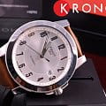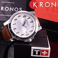 Наручные часы с классическим ремешком из натуральной кожи - стильная деталь для поддержания солидного имиджа. Привлекательно выглядит блестящий зубчатый безельБезельВнешний ободок, закрепляющий стекло. В спортивных часах так называется поворотное кольцо с делениями на циферблате, выполняет роль таймера – замеряет отрезки времени на шкале. Неподвижный безель – элемент декора. Однонаправленно вращающийся безель на дайверских часах позволяет фиксировать моменты погружения и выныривания на поверхность. в сочетании с узорчатым светлым циферблатом. Внутри корпуса из нержавеющей стали 316L заключён автоматический калибр ETA C15.111 SwissmaticSwissmaticШвейцарский автоматический калибр от компании ETA с 3-х дневным запасом хода и 19 камнями в механизме (C15.111), отличается высокой точностью хода., который отличается запасом хода до 72 часов. Сапфировое стекло. Яркая люминесцентная подсветкаЛюминесцентное покрытиеПозволяет считывать показания времени в темноте. Производители наносят на стрелки, часовые индексы, безель или поверхность циферблата светонакопительный состав, дающий холодное свечение.. Прозрачная задняя крышка корпуса. Водостойкость 10 бар. Окошко даты. Габариты: 44 x 44 x 12,5 мм.