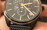 Прочный стальной корпус устойчив к появлению царапин и повреждений, часы сохранят первоначальный внешний вид на много лет благодаря золотому PVD-покрытиюPVDУльтратонкое покрытие наносится в технике вакуумного напыления, сочетает в себе нитрид титана особой прочности со слоем золота или оксида хрома. Несёт в себе декоративную или защитную функцию.. Браслет миланского плетения дополнен ювелирной застежкой с фиксатором. Сапфировое стекло. Водонепроницаемость до 10 бар. Функции: хронографХронографФункция позволяет измерять отрезки времени с особой точностью: часы, минуты, секунды. Верным признаком хронографа является наличие на циферблате 3 дополнительных окошек-счётчиков., секундомер, календарь. Габариты: 41 x 41 x 10,7 мм.