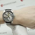 Это аксессуар для тех, кто действительно любит часовое искусство и разбирается в нём, вся их работа выставлена напоказ - перед вами часы-скелетон. Всё до мельчайших подробностей просматривается через открытый циферблат и прозрачную заднюю крышку, на наших глазах происходит неторопливое движение швейцарского механического калибра ETA 6497 с запасом хода 46 часов. Модель дополнена ремешком из натуральной кожи, что придаёт особый стиль. Сапфировое стекло защищает механизм от повреждений и устойчиво к царапинам. Габариты: 43 x 43 x 12 мм.