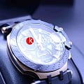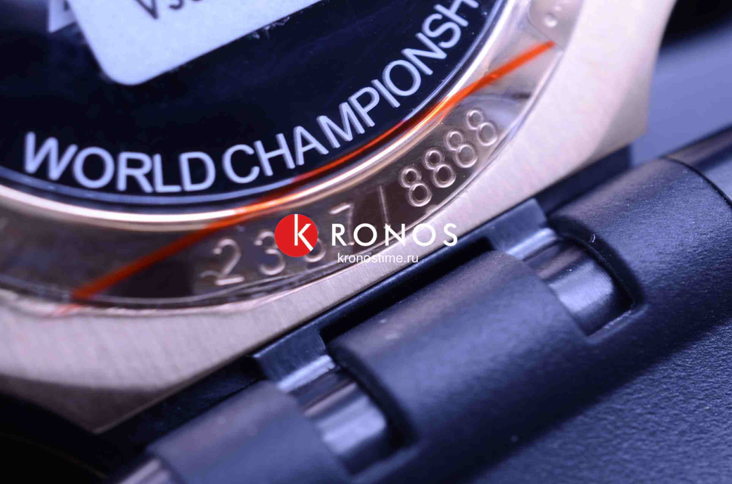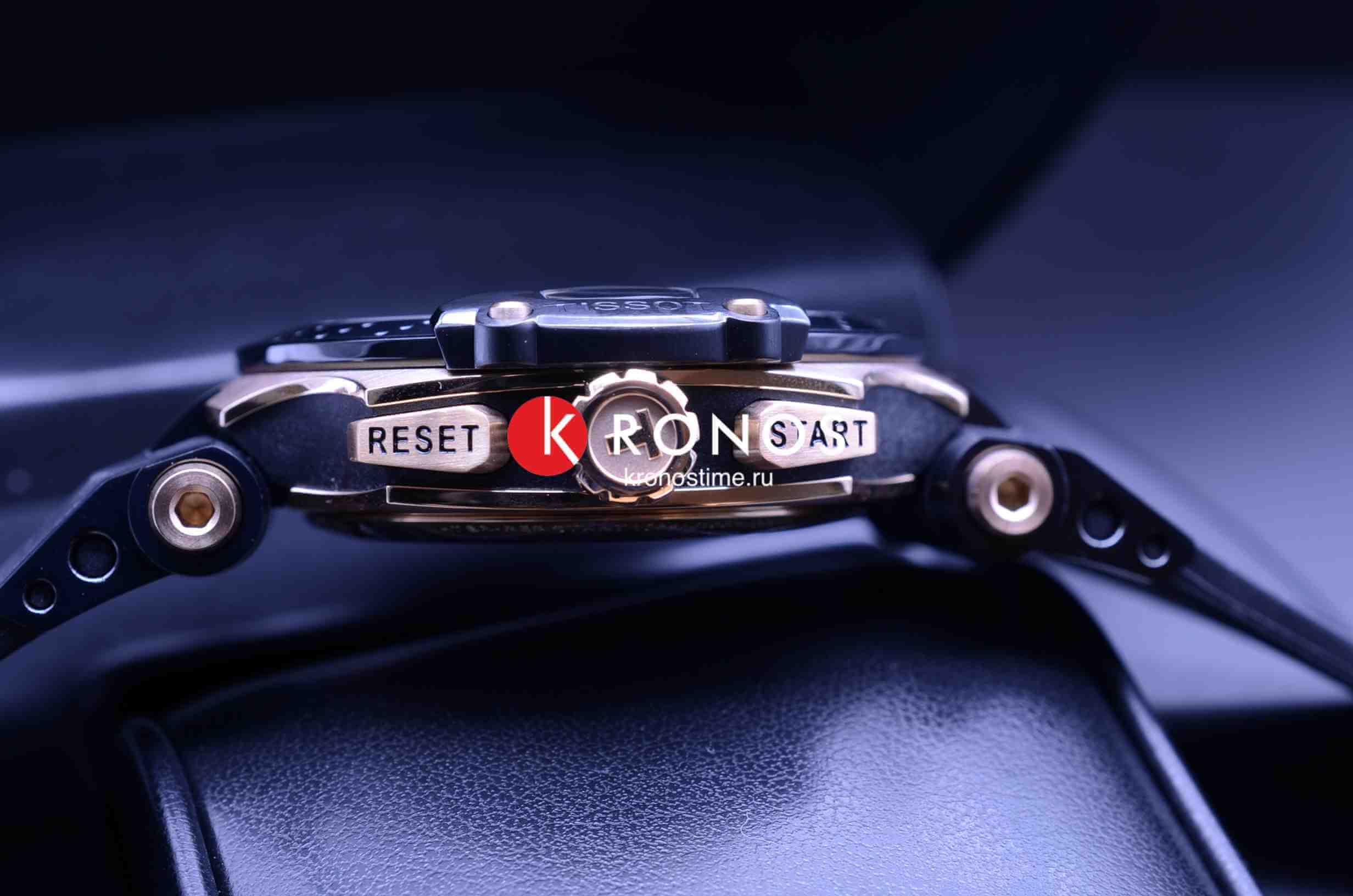 Наручные часы c оригинальным дизайном, напоминающим гоночные мотоциклы. БезельБезельВнешний ободок, закрепляющий стекло. В спортивных часах так называется поворотное кольцо с делениями на циферблате, выполняет роль таймера – замеряет отрезки времени на шкале. Неподвижный безель – элемент декора. Однонаправленно вращающийся безель на дайверских часах позволяет фиксировать моменты погружения и выныривания на поверхность. имитирует перфорированный тормозной диск, силиконовый ремешок отсылает нас к рисунку протектора шины. Аксессуар станет главным атрибутом вашего образа. Спортивный хронографХронографФункция позволяет измерять отрезки времени с особой точностью: часы, минуты, секунды. Верным признаком хронографа является наличие на циферблате 3 дополнительных окошек-счётчиков. работает от батарейки, комплектуется кварцевым калибром ETA G10.212. Задняя крышка с фирменным логотипом MotoGP. Корпус с чёрным и золотисто-розовым PVD-покрытиемPVDУльтратонкое покрытие наносится в технике вакуумного напыления, сочетает в себе нитрид титана особой прочности со слоем золота или оксида хрома. Несёт в себе декоративную или защитную функцию.. Надёжное стекло из сапфира. Коробка в виде мотоциклетного шлема. Секундомер, окошко даты. Габариты: 43 x 44,5 x 12,7 мм.
