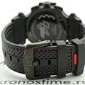 Динамичный аксессуар отличается спортивным дизайном, брендовый хронографХронографФункция позволяет измерять отрезки времени с особой точностью: часы, минуты, секунды. Верным признаком хронографа является наличие на циферблате 3 дополнительных окошек-счётчиков. станет лучшим подарком для поклонника мотоциклов и высоких скоростей. Внушительный безельБезельВнешний ободок, закрепляющий стекло. В спортивных часах так называется поворотное кольцо с делениями на циферблате, выполняет роль таймера – замеряет отрезки времени на шкале. Неподвижный безель – элемент декора. Однонаправленно вращающийся безель на дайверских часах позволяет фиксировать моменты погружения и выныривания на поверхность. выполнен в виде перфорированного тормозного диска, ремешок из силикона с синтетической фактурой и красной прострочкой стильно смотрится на запястье. Кварцевый калибр ETA G10.212. Прочный корпус с чёрным и серым PVD-покрытиемPVDУльтратонкое покрытие наносится в технике вакуумного напыления, сочетает в себе нитрид титана особой прочности со слоем золота или оксида хрома. Несёт в себе декоративную или защитную функцию.. Задняя крышка с логотипом. Оригинальная коробка-мотоциклетный шлем. Секундомер, апертура даты, тахиметрТахиметрРазмеченная шкала, располагается на ободке или безеле часов. Тахиметр позволяет рассчитать скорость на определённом участке пути, расстояние измеряется в километрах или милях.. Габариты: 43 x 44,5 x 12,7 мм.