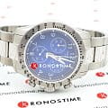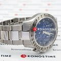 Сдержанный тёмно-синий циферблат со счётчиками хронографаХронографФункция позволяет измерять отрезки времени с особой точностью: часы, минуты, секунды. Верным признаком хронографа является наличие на циферблате 3 дополнительных окошек-счётчиков. акцентирует всё внимание на себе. Стрелки имеют люминесцентную подсветкуЛюминесцентное покрытиеПозволяет считывать показания времени в темноте. Производители наносят на стрелки, часовые индексы, безель или поверхность циферблата светонакопительный состав, дающий холодное свечение., чтобы использование часов в темноте не вызывало затруднений. Привлекательный внешний вид. Кварцевый механизм ETA G10.212. Хирургическая сталь устойчива к повреждениям и ударам. Водозащита до 10 бар. . Секундомер, тахиметрТахиметрРазмеченная шкала, располагается на ободке или безеле часов. Тахиметр позволяет рассчитать скорость на определённом участке пути, расстояние измеряется в километрах или милях., календарь. Габариты: 42,5 x 42,5 x 11,2 мм.