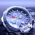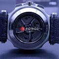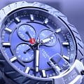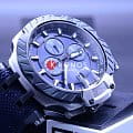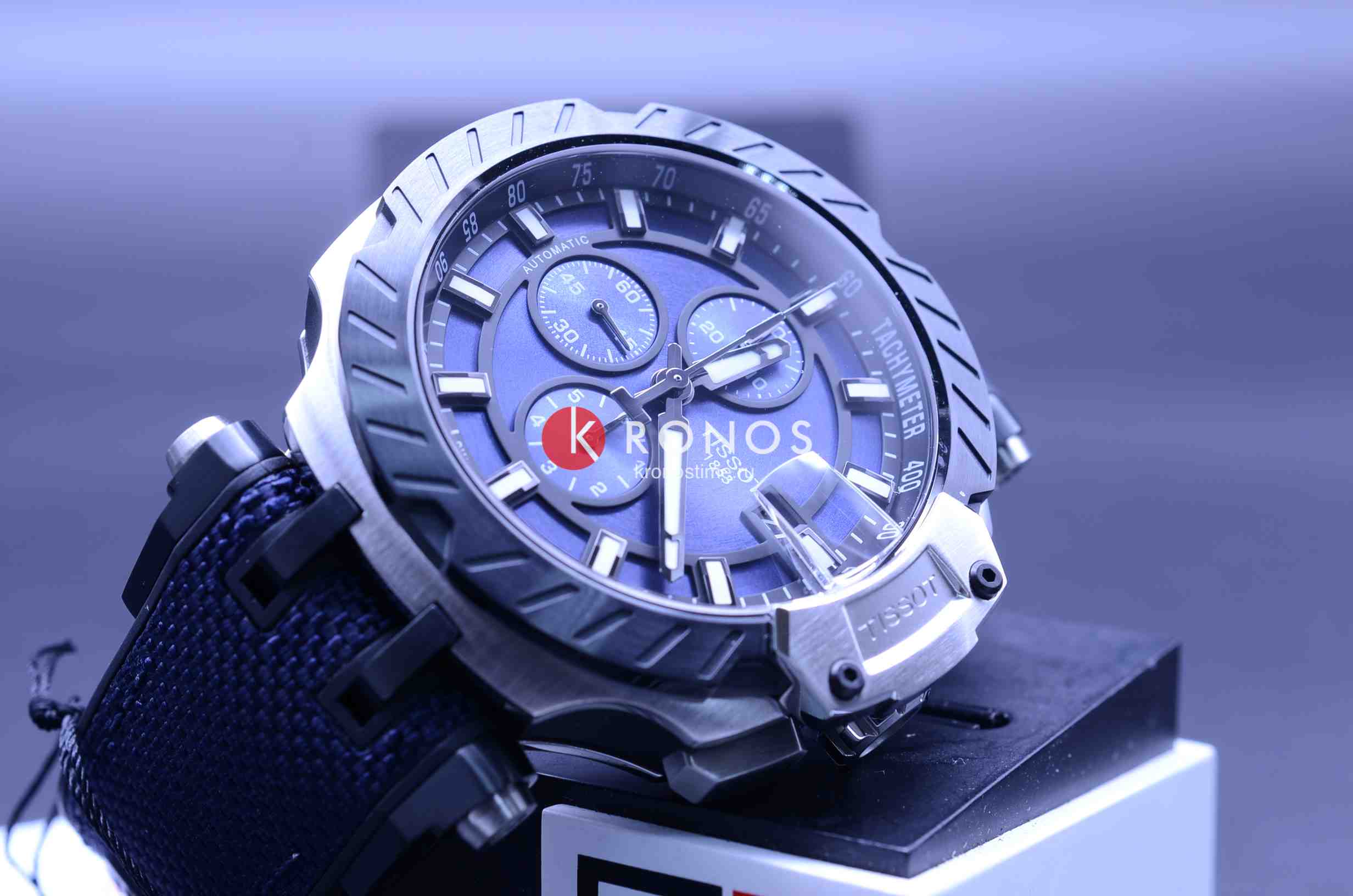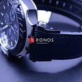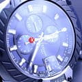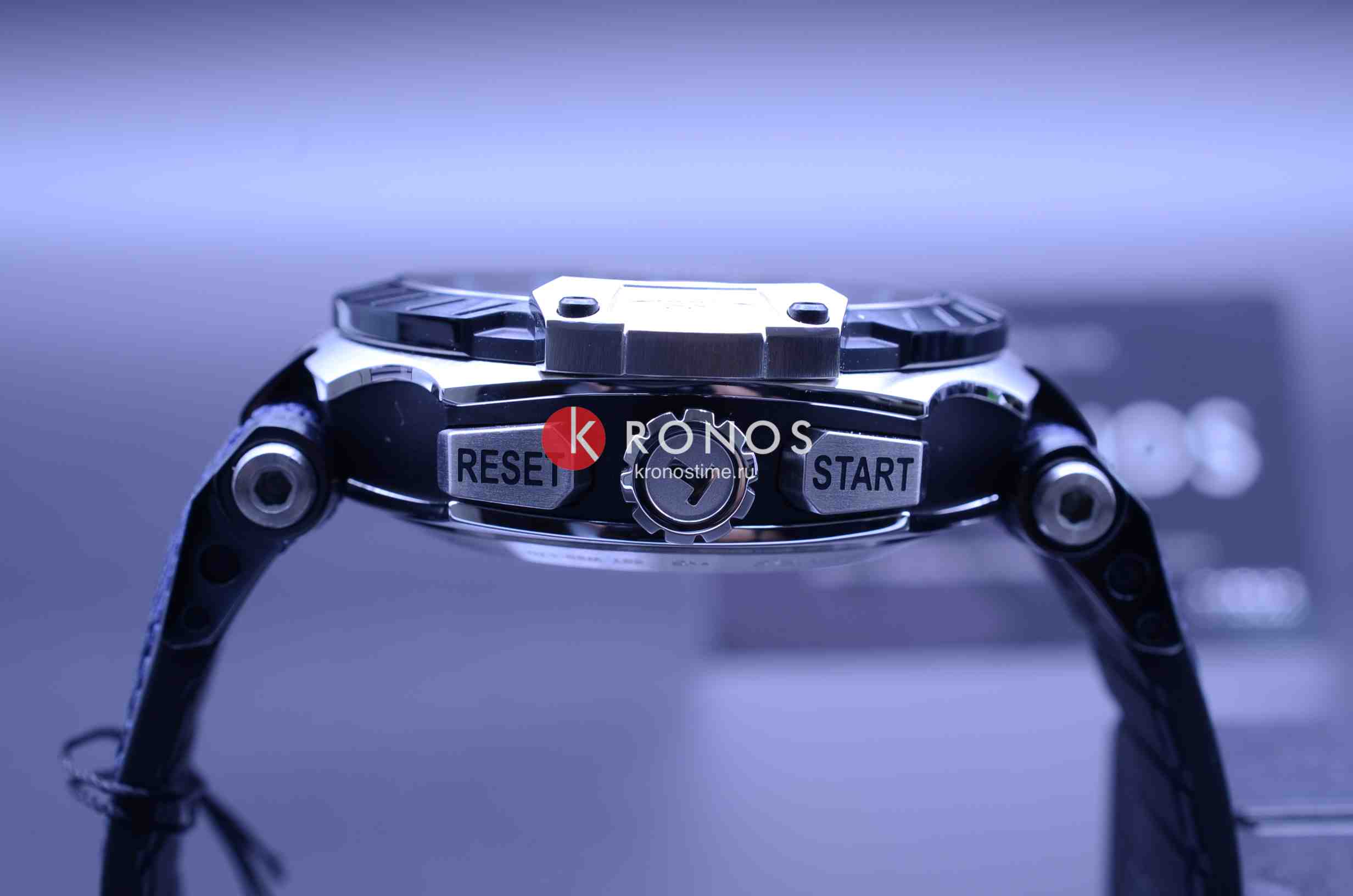 БезельБезельВнешний ободок, закрепляющий стекло. В спортивных часах так называется поворотное кольцо с делениями на циферблате, выполняет роль таймера – замеряет отрезки времени на шкале. Неподвижный безель – элемент декора. Однонаправленно вращающийся безель на дайверских часах позволяет фиксировать моменты погружения и выныривания на поверхность. выполнен в образе тормозного диска, чёрный цвет сочетается с синими переливами массивного циферблата со счётчиками хронографаХронографФункция позволяет измерять отрезки времени с особой точностью: часы, минуты, секунды. Верным признаком хронографа является наличие на циферблате 3 дополнительных окошек-счётчиков.. Задняя крышка сделана в виде колеса. Механические часы с автоподзаводом оснащены швейцарским механизмом C01.211, сохраняющим запас хода до 40 часов. Корпус из долговечной стали 316L с PVD-покрытиемPVDУльтратонкое покрытие наносится в технике вакуумного напыления, сочетает в себе нитрид титана особой прочности со слоем золота или оксида хрома. Несёт в себе декоративную или защитную функцию.. Ремешок из каучука и натуральной кожи. Секундомер, календарь, тахиметрТахиметрРазмеченная шкала, располагается на ободке или безеле часов. Тахиметр позволяет рассчитать скорость на определённом участке пути, расстояние измеряется в километрах или милях.. Габариты: 48,8 x 45 x 16,6 мм.