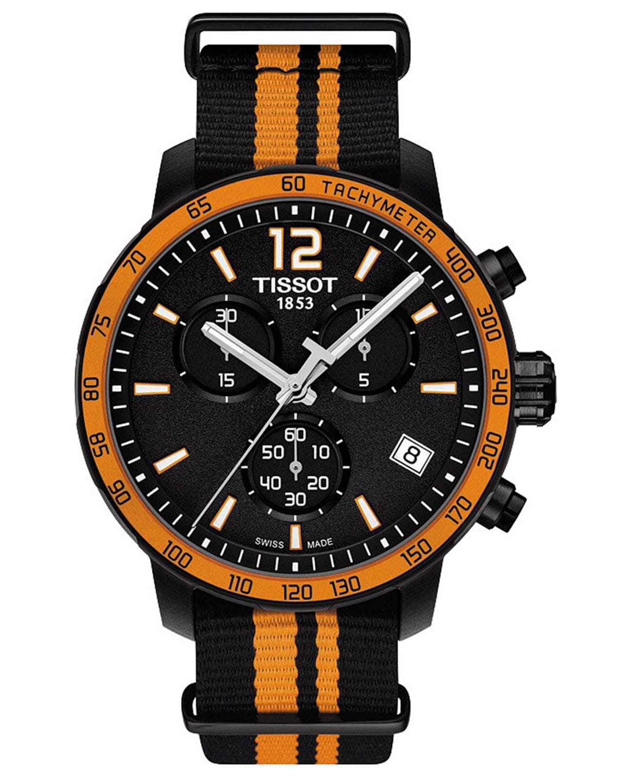TISSOT T0954101703700 T-Sport Quickster Quartz - мужские кварцевые наручные часы Корпус этих часов среднего размера (40 мм) и выполнен из нержавеющей стали L316 металлического цвета Модель TISSOT T0954101703700 T-Sport Quickster Quartz имеет устойчивое к царапинам сапфировое стекло, тканевый ремешок серого цвета, белый циферблат Калибр механизма: ETA F06111 Класс водозащиты: 100 м / 10 АТМ (разрешается плавание и ныряние без акваланга) Дополнительные функции и особенности: отображение числа Полная заводская комплектация TISSOT: оригинальные часы, фирменная коробка, инструкция, сервисная книжка, роман о часовой фабрике, миникаталог, замшевый фирменный чехол черного цвета для хранения и/или переноски часов, кассовый и товарный чеки Международная гарантия 2 года Производство и сборка: Швейцария