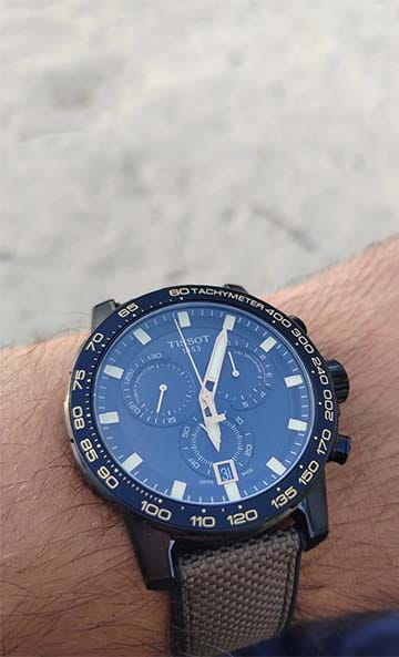 Мужские швейцарские часы Tissot SuperSport Chrono T125.617.37.051.01 с кварцевым механизмом — квинтэссенция современного спортивного стиля. Метки обеспечивают лучшую читаемость показаний и придают циферблату глубину. Tissot Supersport Chrono — мужская, динамичная и футуристическая коллекция, широкий выбор моделей которой позволит каждому выбрать часы, которые лучше всего подходят для его запястья. Аксессуар позволит грамотно дополнить образ, гармония чёрно-золотистой палитры никогда не потеряет актуальности. Наручные часы позволят всегда находиться в центре внимания. Массивный циферблат с крупной индикацией времени, симметричным расположением окошек – важная деталь для делового мужчины, привыкшего всё делать вовремя. Кожаный ремешок бежевого цвета. Швейцарский кварцевый механизм ETA G10.212. Сапфировое стекло. Корпус из нержавеющей стали с PVD-покрытиемPVDУльтратонкое покрытие наносится в технике вакуумного напыления, сочетает в себе нитрид титана особой прочности со слоем золота или оксида хрома. Несёт в себе декоративную или защитную функцию.. БезельБезельВнешний ободок, закрепляющий стекло. В спортивных часах так называется поворотное кольцо с делениями на циферблате, выполняет роль таймера – замеряет отрезки времени на шкале. Неподвижный безель – элемент декора. Однонаправленно вращающийся безель на дайверских часах позволяет фиксировать моменты погружения и выныривания на поверхность. размечен шкалой тахиметраТахиметрРазмеченная шкала, располагается на ободке или безеле часов. Тахиметр позволяет рассчитать скорость на определённом участке пути, расстояние измеряется в километрах или милях.. Водонепроницаемость до 10 бар. Люминесцентная подсветкаЛюминесцентное покрытиеПозволяет считывать показания времени в темноте. Производители наносят на стрелки, часовые индексы, безель или поверхность циферблата светонакопительный состав, дающий холодное свечение.. Секундомер, хронографХронографФункция позволяет измерять отрезки времени с особой точностью: часы, минуты, секунды. Верным признаком хронографа является наличие на циферблате 3 дополнительных окошек-счётчиков., индикация числа. Длина и ширина корпуса: 45,5 мм. Производство и сборка: Швейцария.