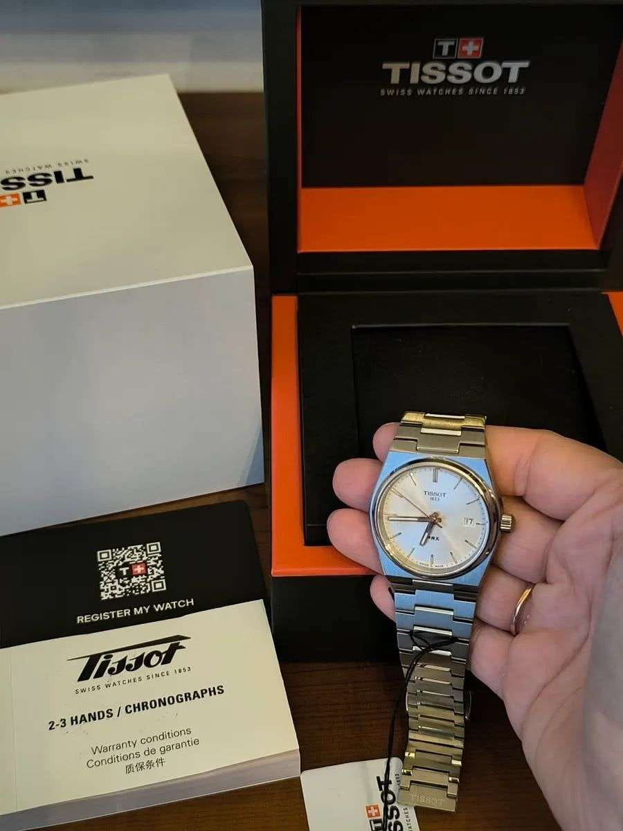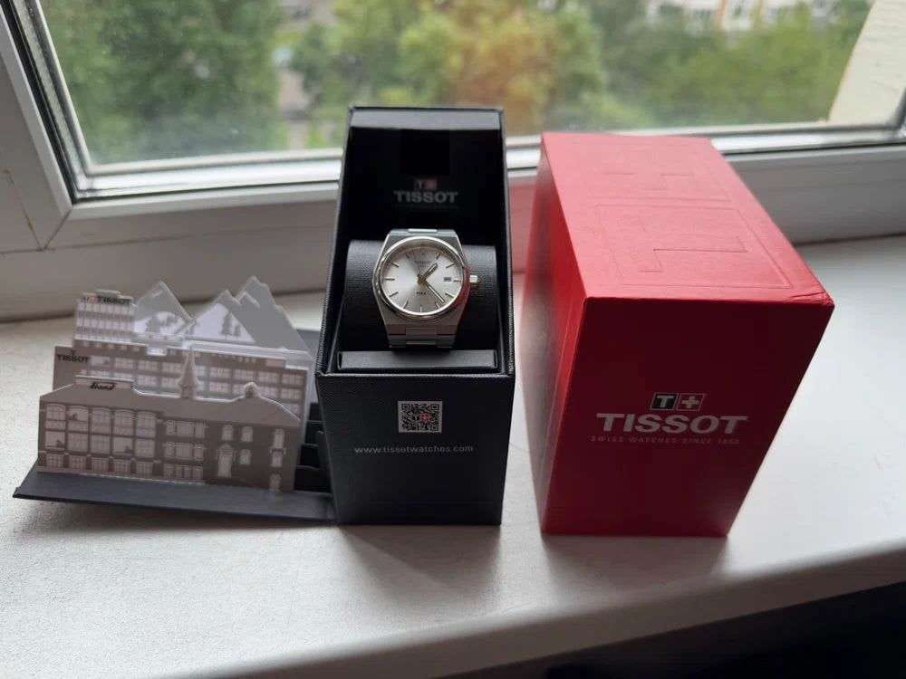Новые оригинальные часы пришли в заводских защитных плёнках и фирменной упаковке у меня была картонная коробка в стильной обложке с историческими логотипами Tissot. Всё выглядит презентабельно, аккуратно и подчёркивает подлинность бренда.