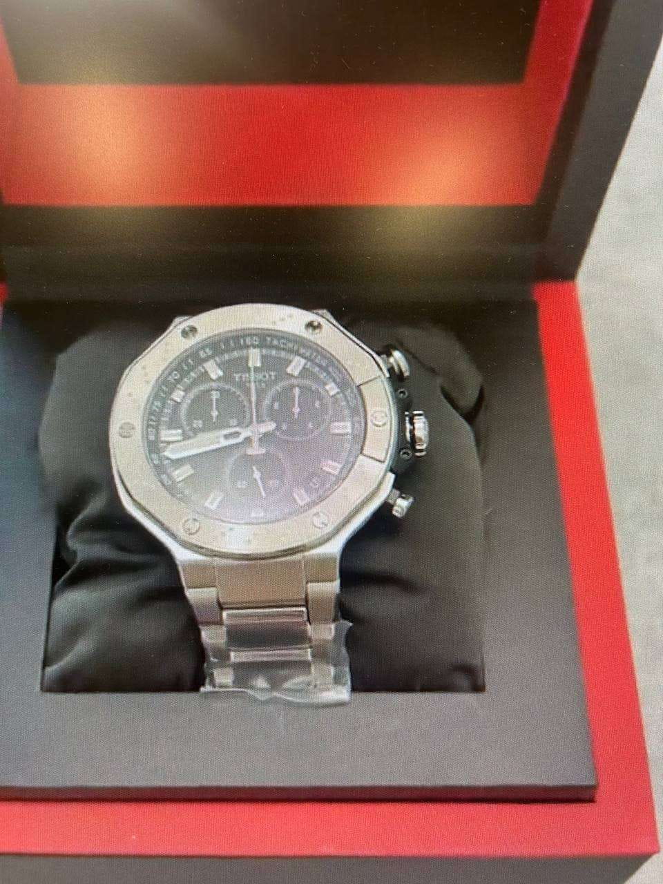 Швейцарские мужские часы-хронографХронографФункция позволяет измерять отрезки времени с особой точностью: часы, минуты, секунды. Верным признаком хронографа является наличие на циферблате 3 дополнительных окошек-счётчиков. Tissot T-Race Chronograph T141.417.11.051.01, кварцевый механизм с высокой точностью. Сапфировое стеклоСапфировое стеклоПрочный и надёжный материал из кристалла сапфира синтетического происхождения, характеризующийся особой твёрдостью и устойчивостью к царапинам и повреждениям. с антибликовым покрытием, устойчивое к появлению царапин, обладающее высокой прозрачностью. Корпус часов изготовлен из нержавеющей стали. Люминесцентная подсветкаЛюминесцентное покрытиеПозволяет считывать показания времени в темноте. Производители наносят на стрелки, часовые индексы, безель или поверхность циферблата светонакопительный состав, дающий холодное свечение. стрелок и меток. Секундомер, тахиметрТахиметрРазмеченная шкала, располагается на ободке или безеле часов. Тахиметр позволяет рассчитать скорость на определённом участке пути, расстояние измеряется в километрах или милях., индикация числа. Класс водозащиты: 100 метров, позволит плавать, нырять и заниматься другими водными видами спорта. Стальной браслет на раскладной застёжкеРаскладная застёжкаТакой тип застёжки используется только на браслетах из металла. Она никогда не раскрывается полностью, происходит разделение на 2 и более частей. Раскладывающая застёжка снизит вероятность потери часов к минимуму..