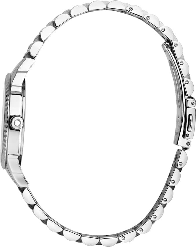 Итальянские женские часы Trussardi T-Bent R2453144510 - это стильный женский аксессуар, который сочетает элегантный дизайн и практичность. Корпус выполнен из нержавеющей стали, что обеспечивает долговечность и утончённый внешний вид. БезельБезельВнешний ободок, закрепляющий стекло. В спортивных часах так называется поворотное кольцо с делениями на циферблате, выполняет роль таймера – замеряет отрезки времени на шкале. Неподвижный безель – элемент декора. Однонаправленно вращающийся безель на дайверских часах позволяет фиксировать моменты погружения и выныривания на поверхность. с алмазной гранью. Надежное минеральное стеклоМинеральное стеклоМинеральное стекло представляет собой искусственно выращенный минерал кварца. Такое стекло отличается особой устойчивостью к повреждениям и царапинам. Уступает по некоторым качествам сапфировому стеклу. защищает циферблат с кристаллами от царапин и обеспечивает долговечность. Модель оснащена кварцевым механизмом, обеспечивающим высокую точность хода. Браслет из нержавеющей стали на раскладной застёжкеРаскладная застёжкаТакой тип застёжки используется только на браслетах из металла. Она никогда не раскрывается полностью, происходит разделение на 2 и более частей. Раскладывающая застёжка снизит вероятность потери часов к минимуму. обеспечивает комфортное ношение. Водозащита 50 метров позволит защитить корпус от случайных брызг или капель дождя. Эта модель – отличный выбор для тех, кто ищет сочетание стиля, качества и функциональности. Часы станут не только полезным аксессуаром, но и выразительным элементом вашего имиджа.