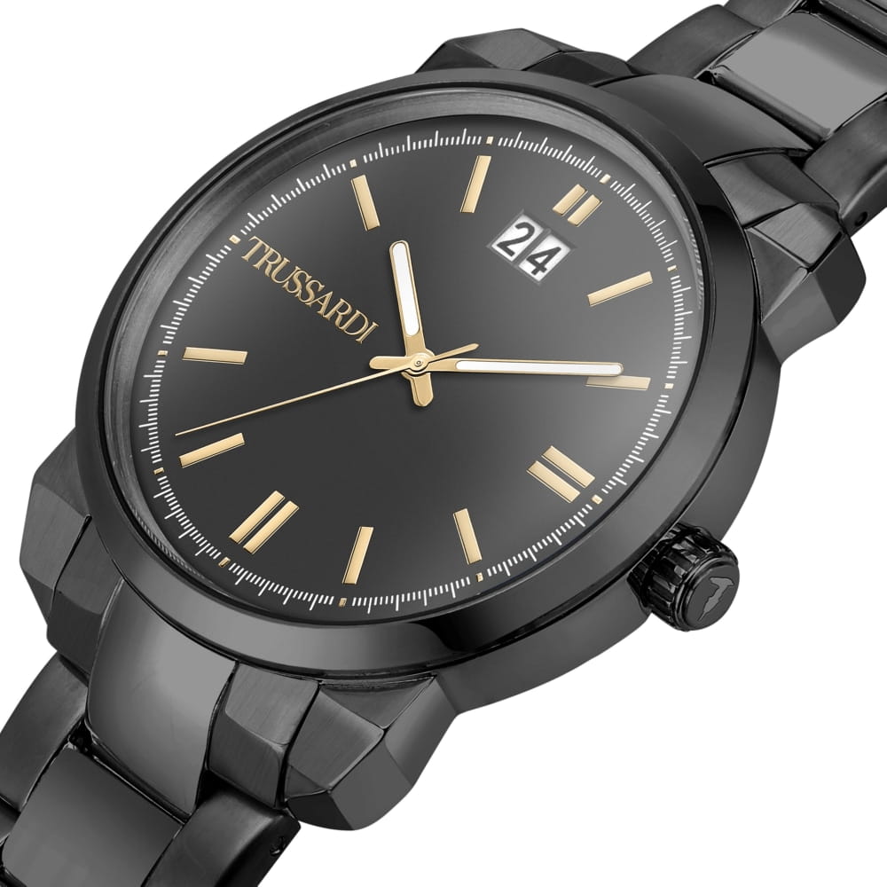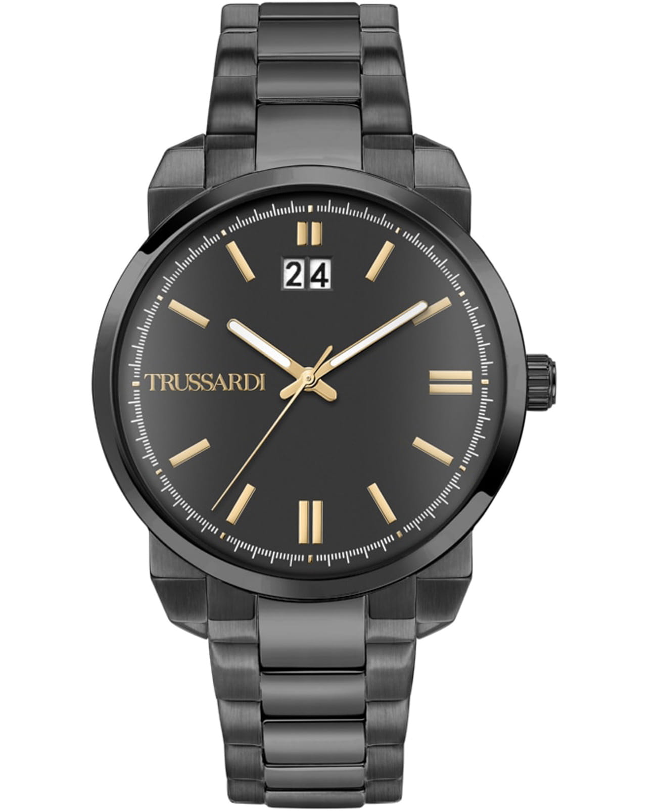 Итальянские мужские часы Trussardi T-City R2453154004 - это стильный мужской аксессуар, который сочетает элегантный дизайн и практичность. Корпус выполнен из нержавеющей стали с IP-покрытиемIP-покрытиеМетод ионного напыления. Демонстрирует повышенную устойчивость к истиранию, окислению и химическим веществам. Под воздействием высокого давления и температуры около 1500°C молекулы металла надёжно соединяются с частицами корпуса часов., что обеспечивает долговечность и утончённый внешний вид. Надежное минеральное стеклоМинеральное стеклоМинеральное стекло представляет собой искусственно выращенный минерал кварца. Такое стекло отличается особой устойчивостью к повреждениям и царапинам. Уступает по некоторым качествам сапфировому стеклу. защищает циферблат от царапин и обеспечивает долговечность. Модель оснащена кварцевым механизмом, обеспечивающим высокую точность хода. Браслет из нержавеющей стали с IP-покрытиемIP-покрытиеМетод ионного напыления. Демонстрирует повышенную устойчивость к истиранию, окислению и химическим веществам. Под воздействием высокого давления и температуры около 1500°C молекулы металла надёжно соединяются с частицами корпуса часов. с раскладной застёжкойРаскладная застёжкаТакой тип застёжки используется только на браслетах из металла. Она никогда не раскрывается полностью, происходит разделение на 2 и более частей. Раскладывающая застёжка снизит вероятность потери часов к минимуму. обеспечивает комфортное ношение. Водозащита 50 метров позволит защитить корпус от случайных брызг или капель дождя. Стрелки оснащены люминесцентным покрытиемЛюминесцентное покрытиеПозволяет считывать показания времени в темноте. Производители наносят на стрелки, часовые индексы, безель или поверхность циферблата светонакопительный состав, дающий холодное свечение., обеспечивающим отличную видимость даже при слабом освещении. Окошко даты в положении 12 часов. Эта модель – отличный выбор для тех, кто ищет сочетание стиля, качества и функциональности. Часы станут не только полезным аксессуаром, но и выразительным элементом вашего имиджа.