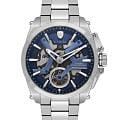 Мужские механические часы Wainer WA.25250-A — это стильный аксессуар, сочетающий в себе швейцарское качество и функциональность. Корпус выполнен из нержавеющей стали 316L диаметром 43 мм и толщиной 14 мм, что делает его прочным и устойчивым к царапинам. Циферблат скелетонизированный, а его поверхность защищена сапфировым стекломСапфировое стеклоПрочный и надёжный материал из кристалла сапфира синтетического происхождения, характеризующийся особой твёрдостью и устойчивостью к царапинам и повреждениям., устойчивым к повреждениям. Прозрачная задняя крышка позволяет наблюдать за работой механизма, подчёркивая внимание к деталям. Браслет из стали 316L шириной 22-20 мм оснащён застёжкой «бабочка» с кнопкамиЗастёжка "бабочка"Такой вид застёжки дополняется предохранителями, помогающими избежать случайного раскрытия браслета. Обладают изящным исполнением. , обеспечивающей комфорт и надёжную фиксацию на запястье. Часы водонепроницаемы до 100 метров (, что позволяет использовать их при плавании и других водных активностях без глубокого погружения. Вес изделия составляет 179 г. Эти часы станут универсальным аксессуаром для тех, кто ценит сочетание стиля, функциональности и швейцарского мастерства — идеальный выбор для повседневной носки и активного образа жизни.