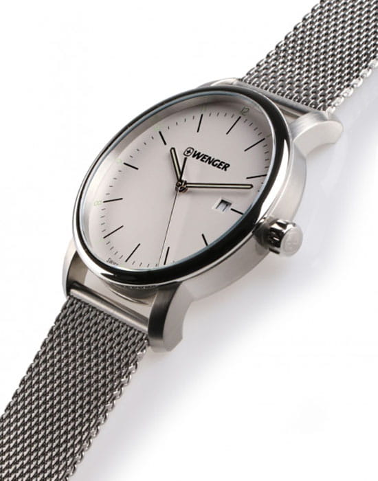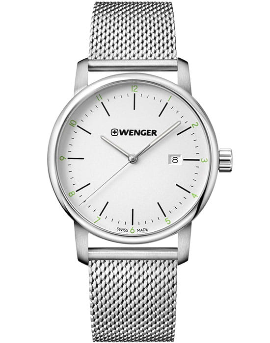 Швейцарские мужские часы в классическом стиле Wenger 01.1741.113, кварцевый механизм с высокой точностью. Класс водозащиты: 100 метров, позволит плавать, нырять и заниматься другими водными видами спорта. Корпус часов изготовлен из стали, серебристого цвета.